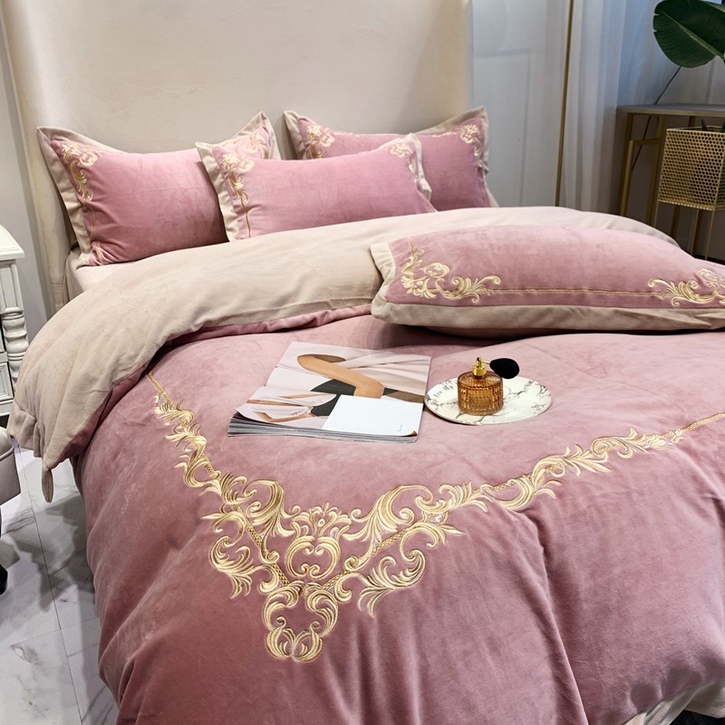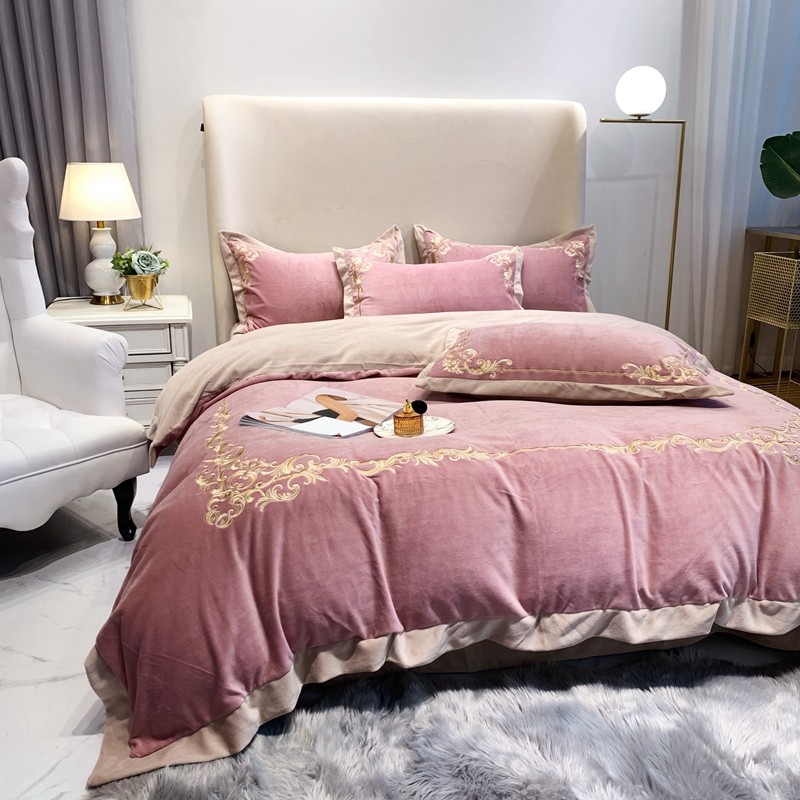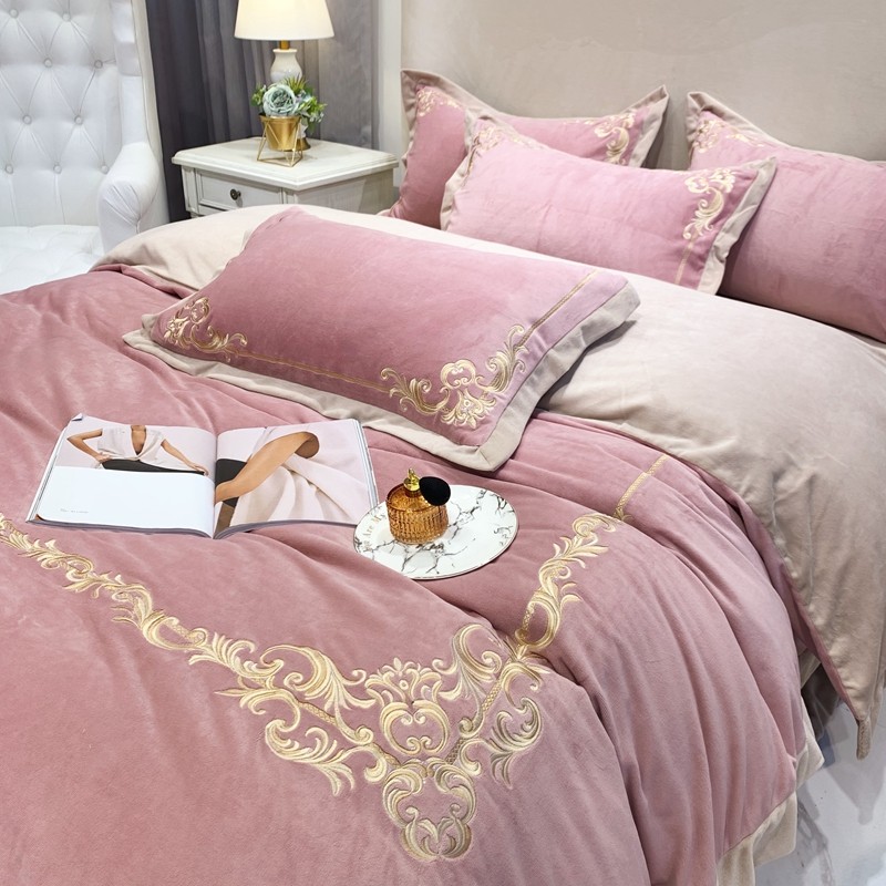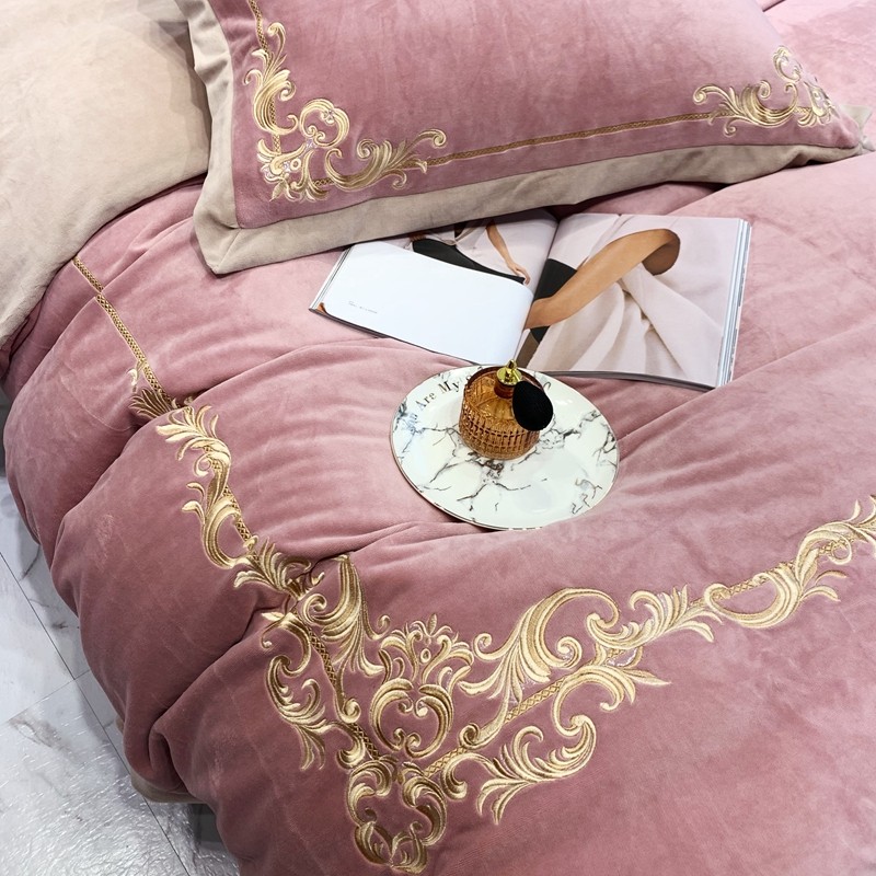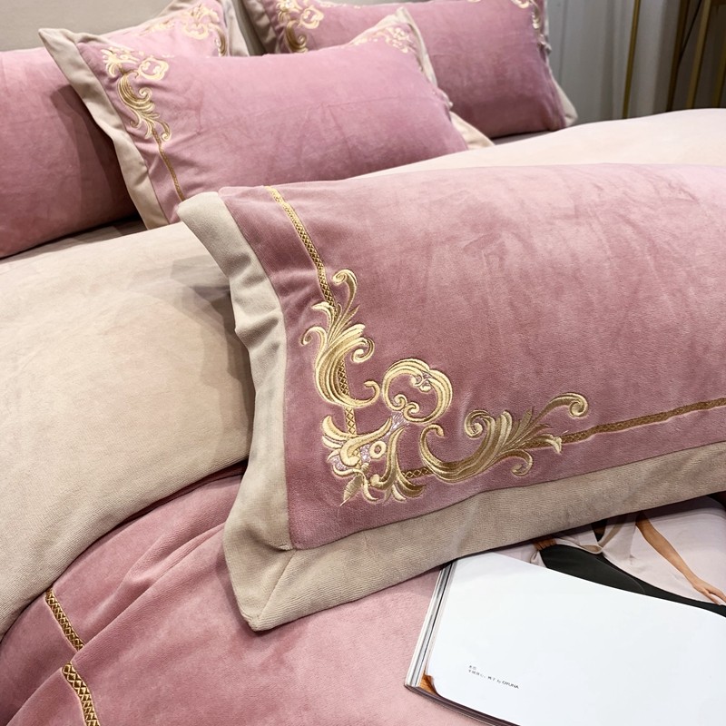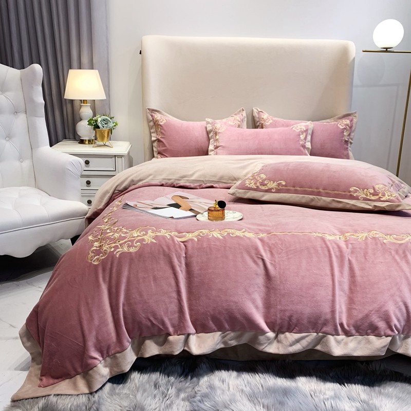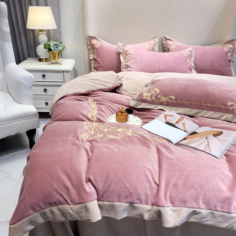 商品名称:馨蕊家居 2021新款秋冬轻奢煦暖绒四件套 巴比伦-粉豆沙