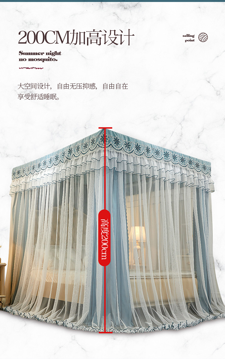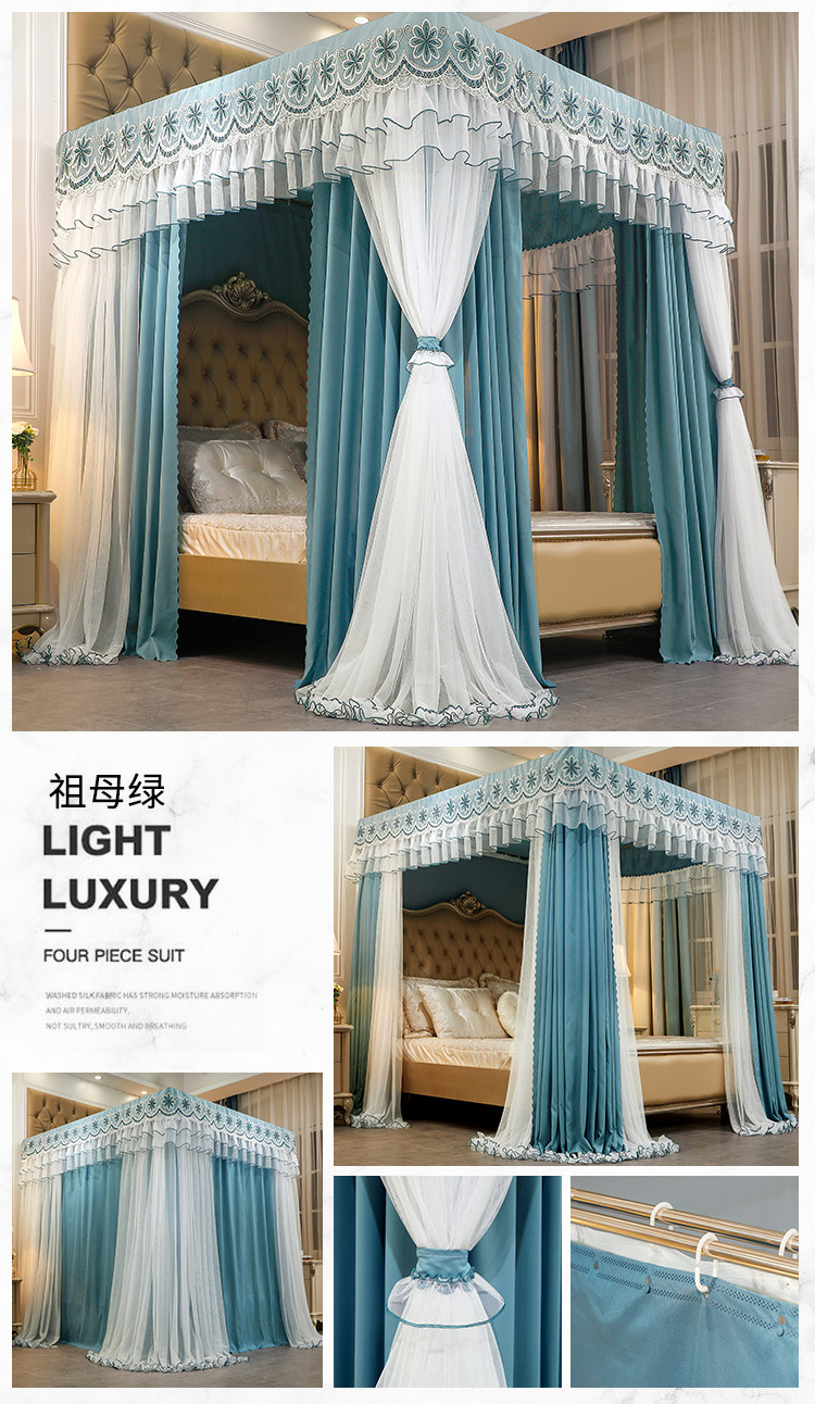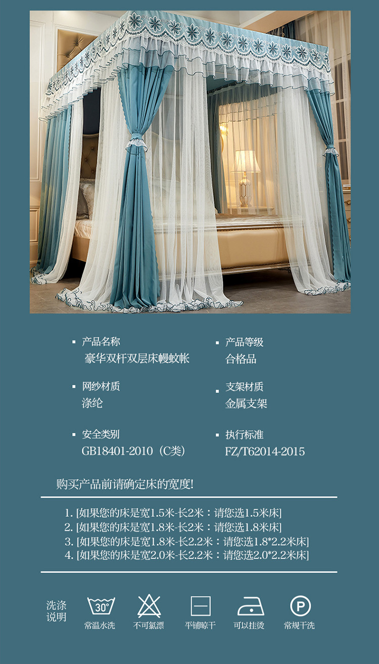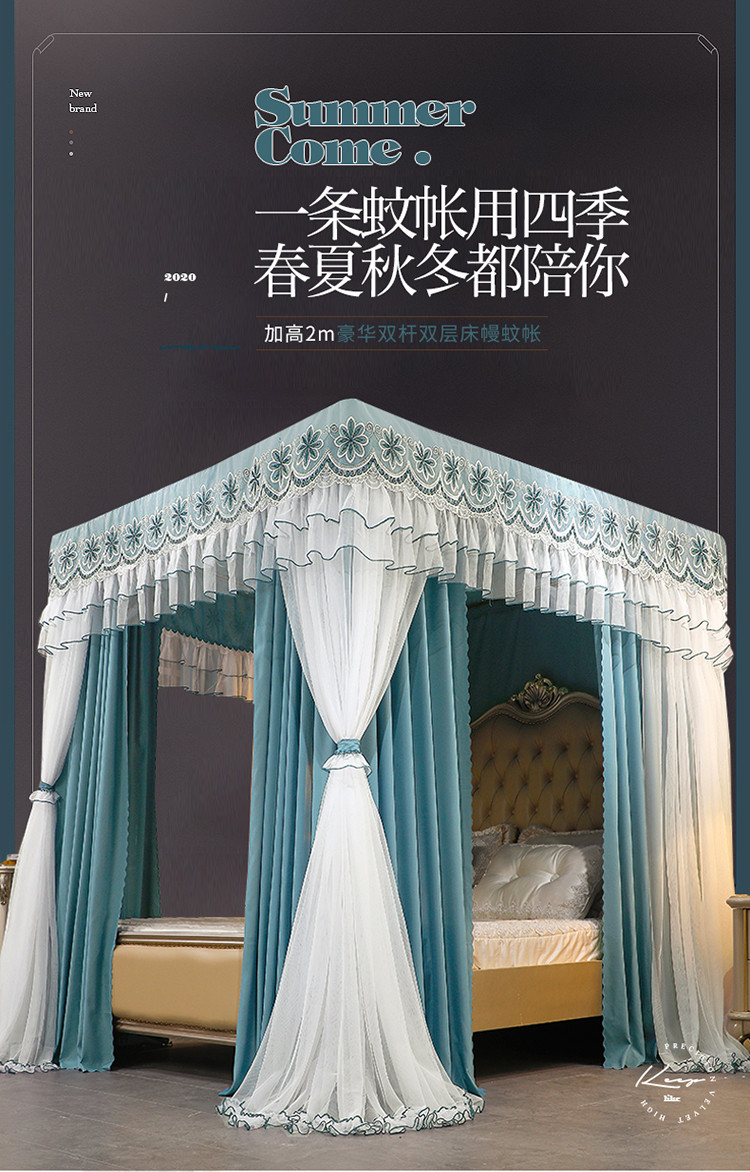 商品名称:艾晶美家纺 2021新款四季款豪华双杆双层蚊帐床幔 祖母绿