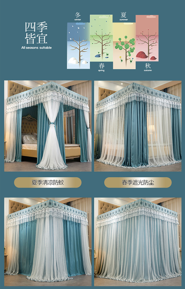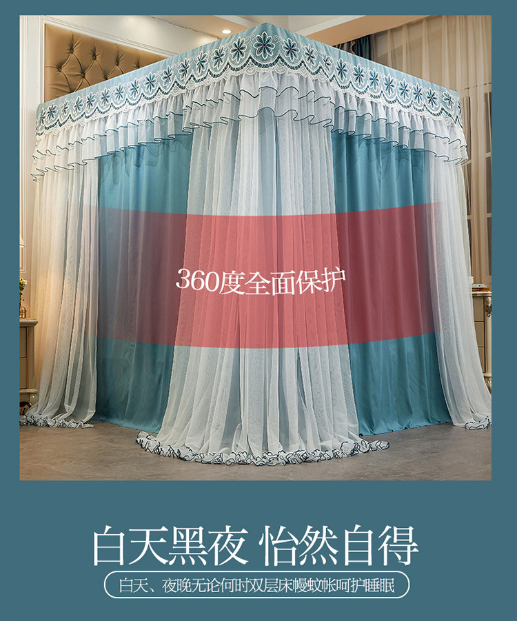艾晶美家纺 2021新款四季款豪华双杆双层蚊帐床幔 祖母绿