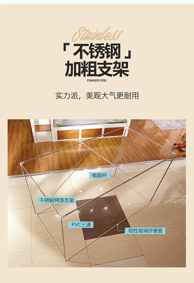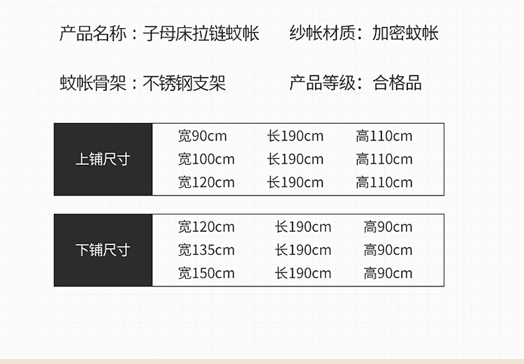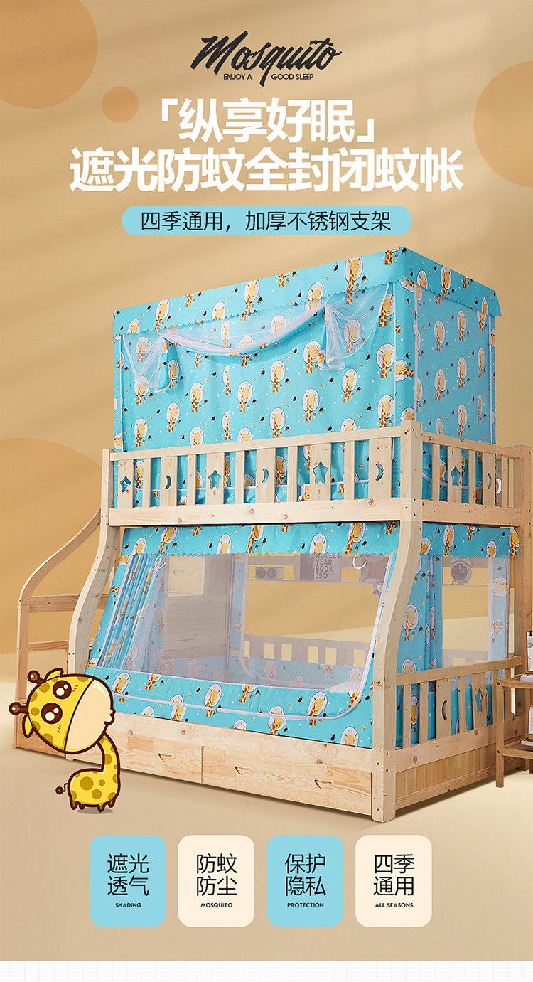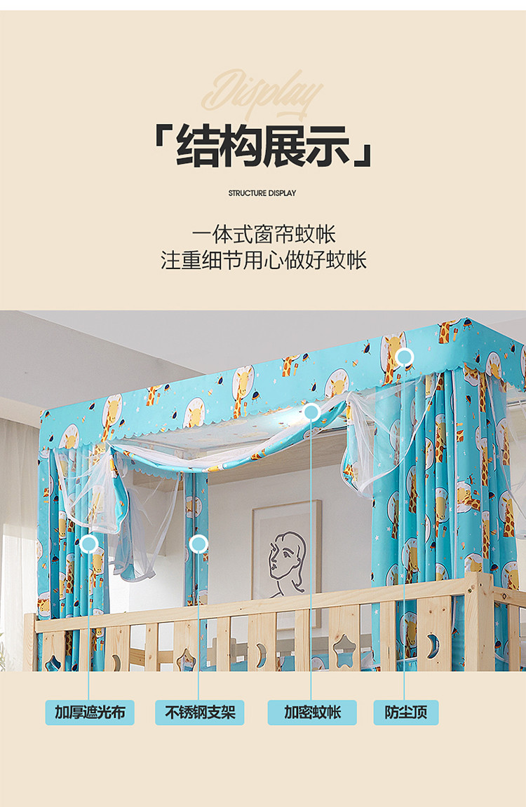 商品名称:迪凡保罗蚊帐2021新款5820不锈钢支架遮光帘子母床拉链蚊帐 太空鹿