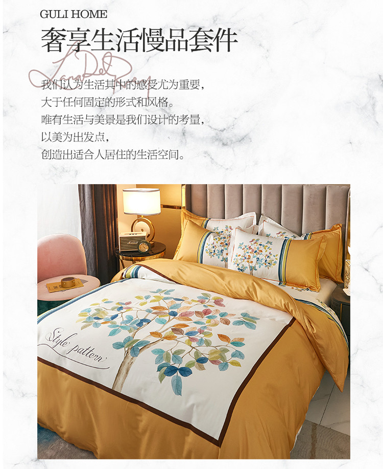 (总)雲归梦 2021新款全棉生态磨毛刺绣四件套,慕思-橙色,慕思-粉紫,慕思-灰,慕思-米黄,慕思-青绿,慕思-天蓝