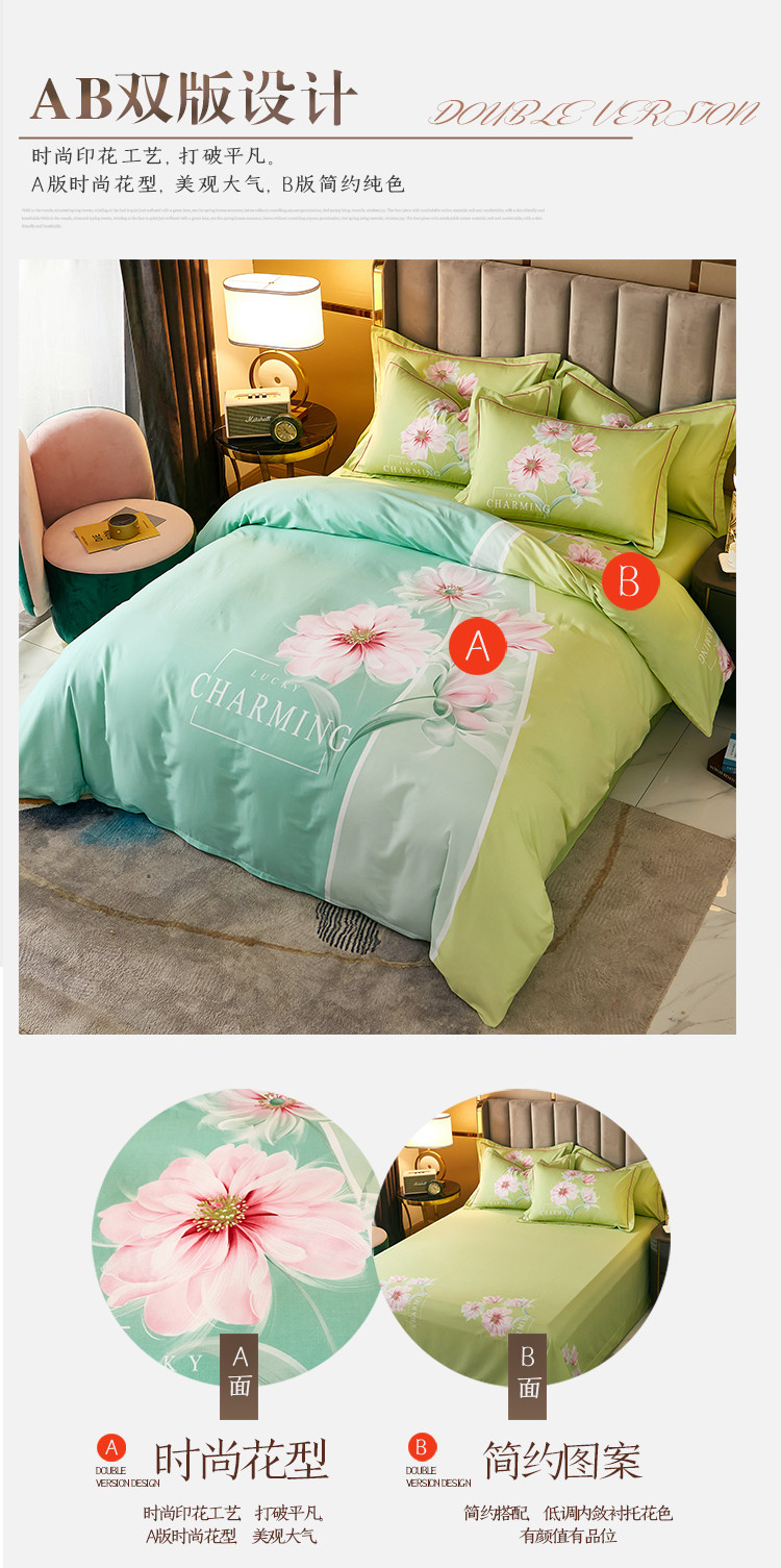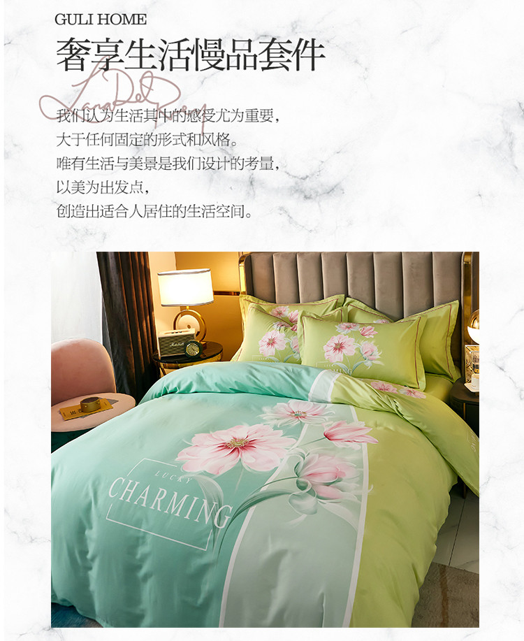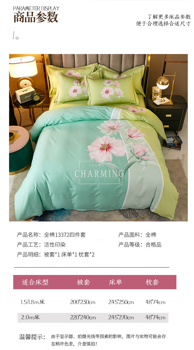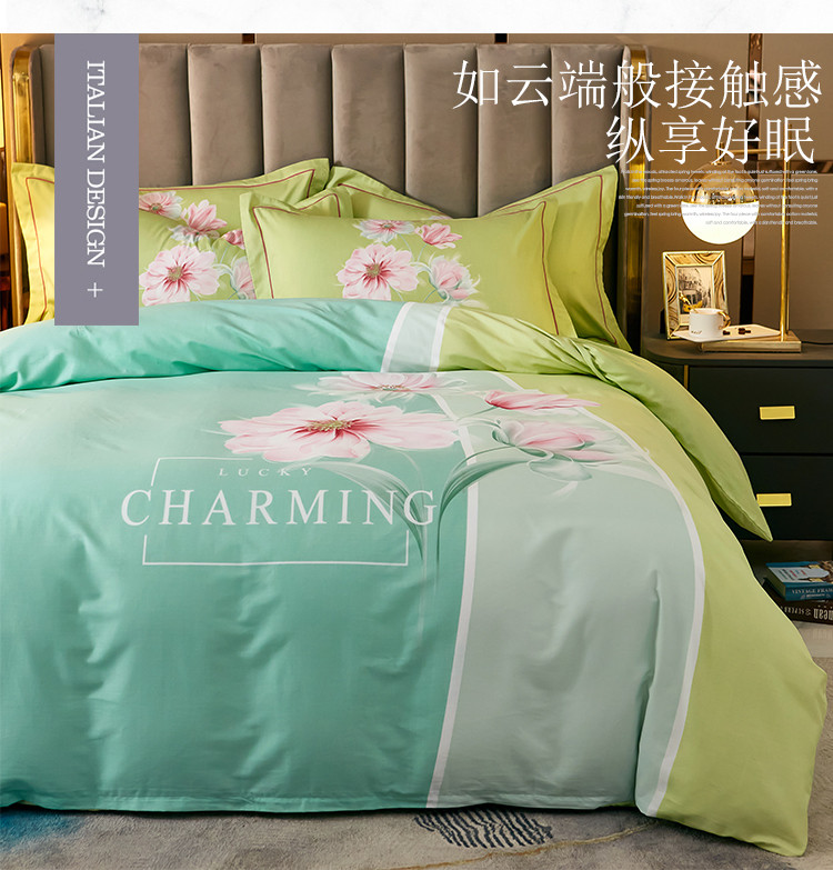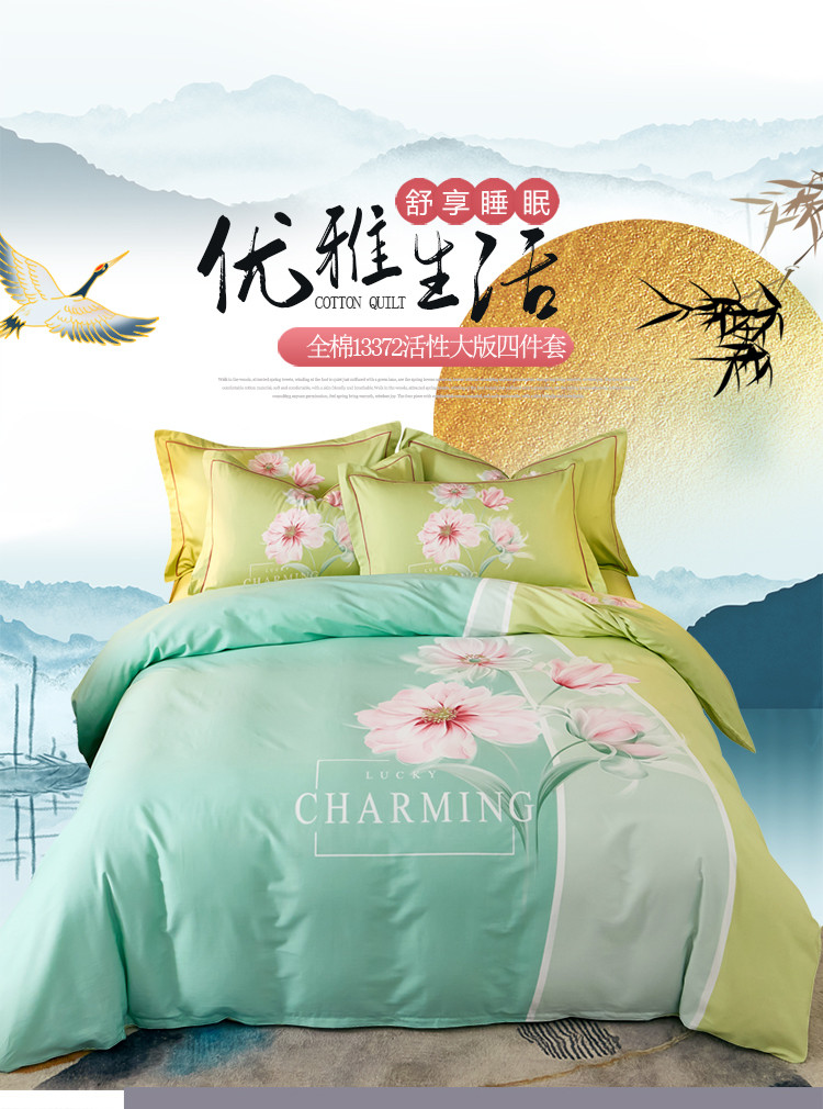 商品名称:雲归梦 2021全棉大版四件套中国风花卉 魅兰莎(绿)