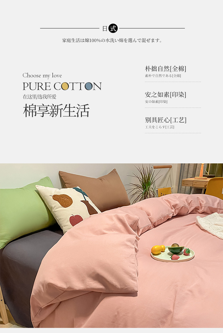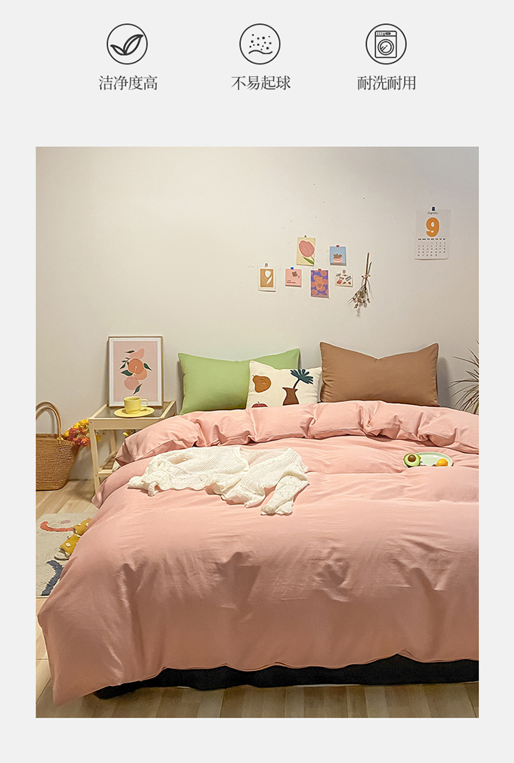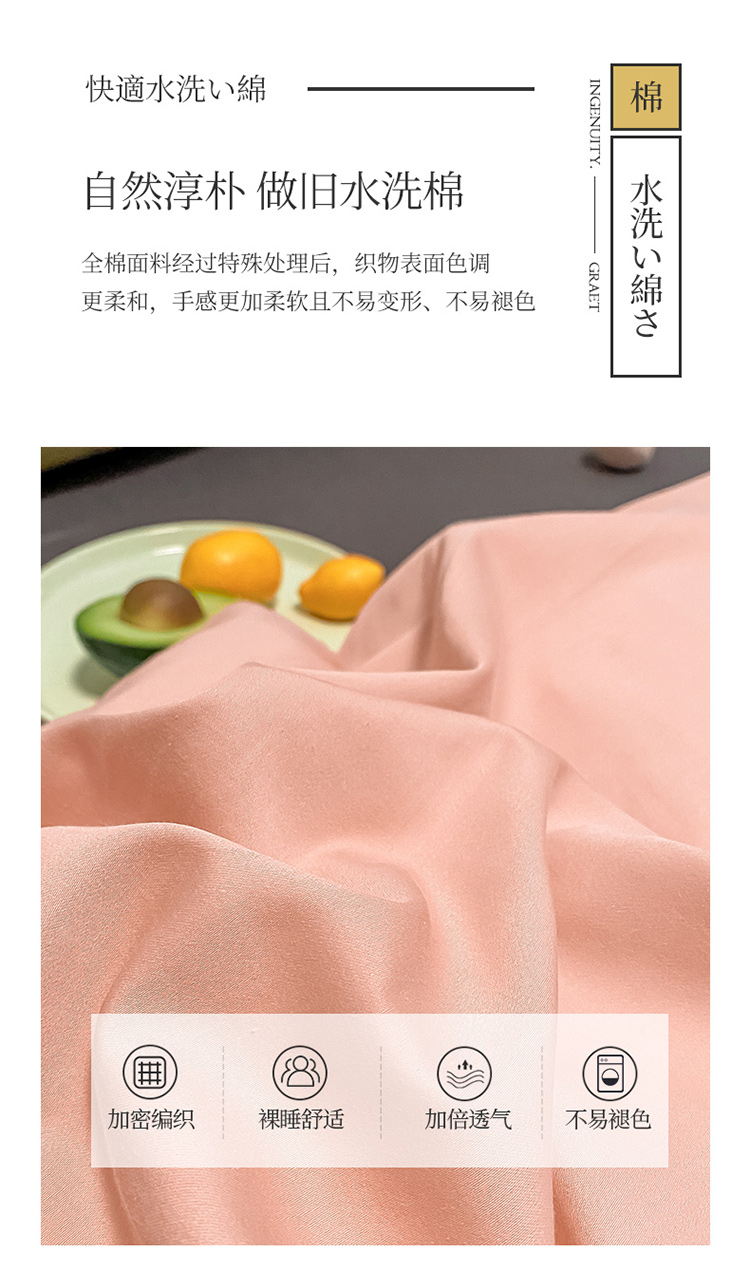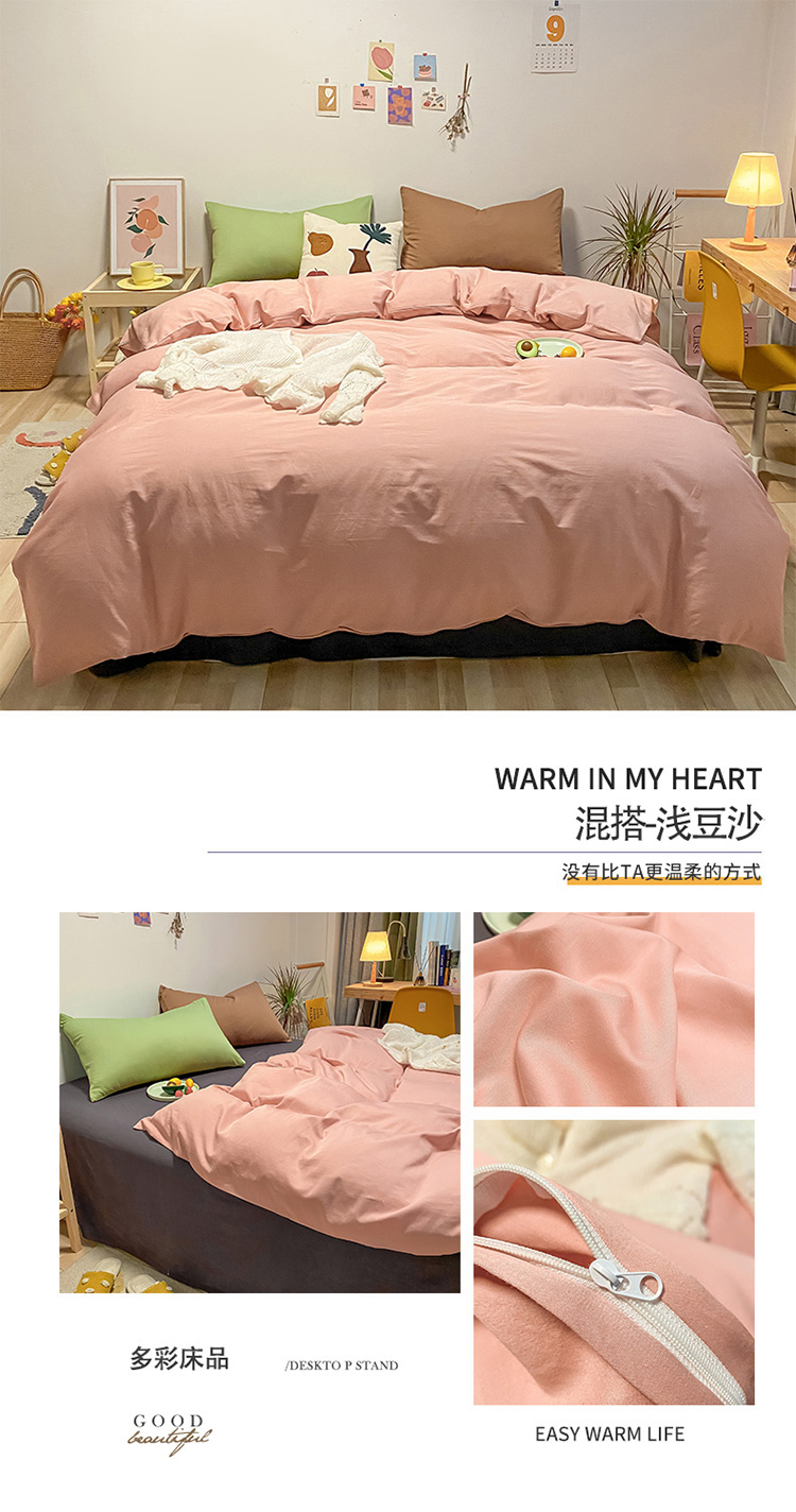 商品名称:蓝巢 2021新款全棉水洗棉混搭款四件套混搭-浅豆沙