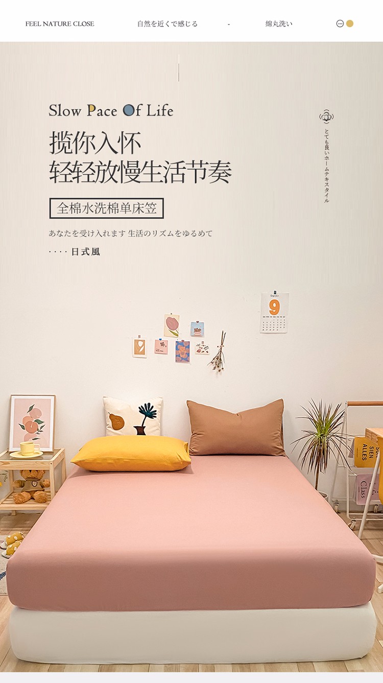 商品名称:蓝巢 2021新款全棉水洗棉混搭款单床笠珊瑚红