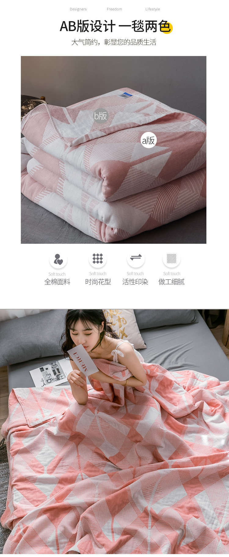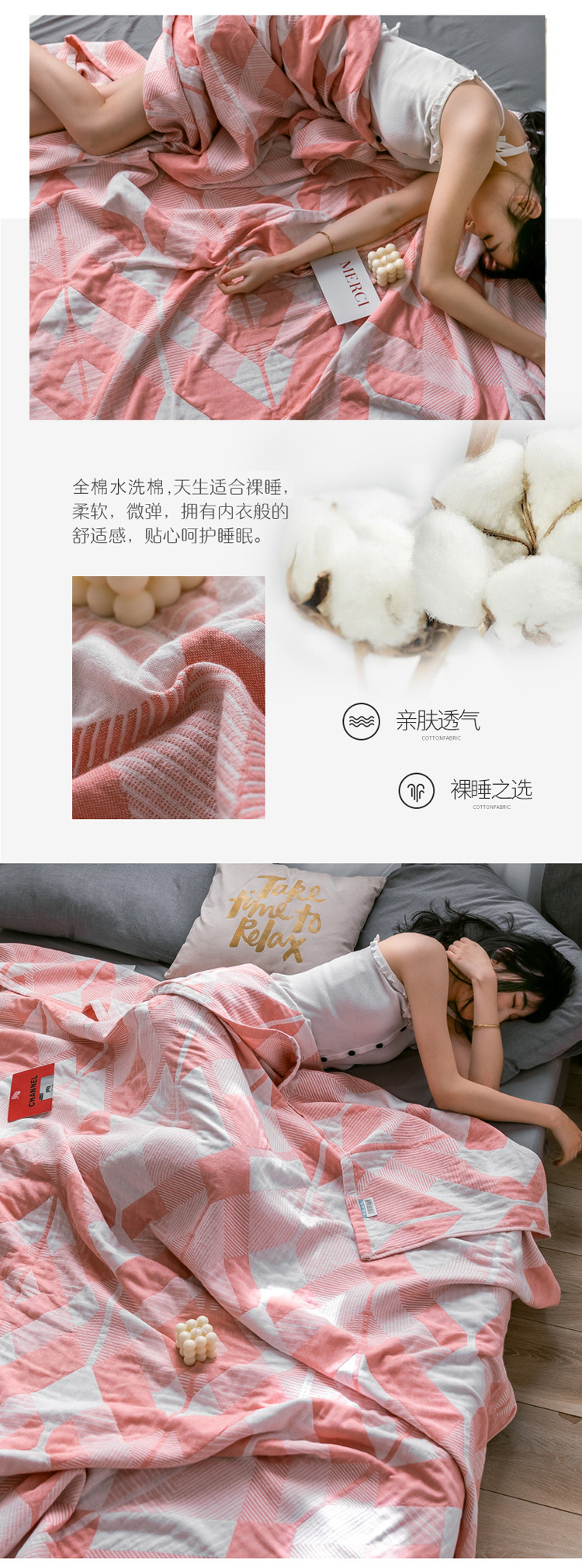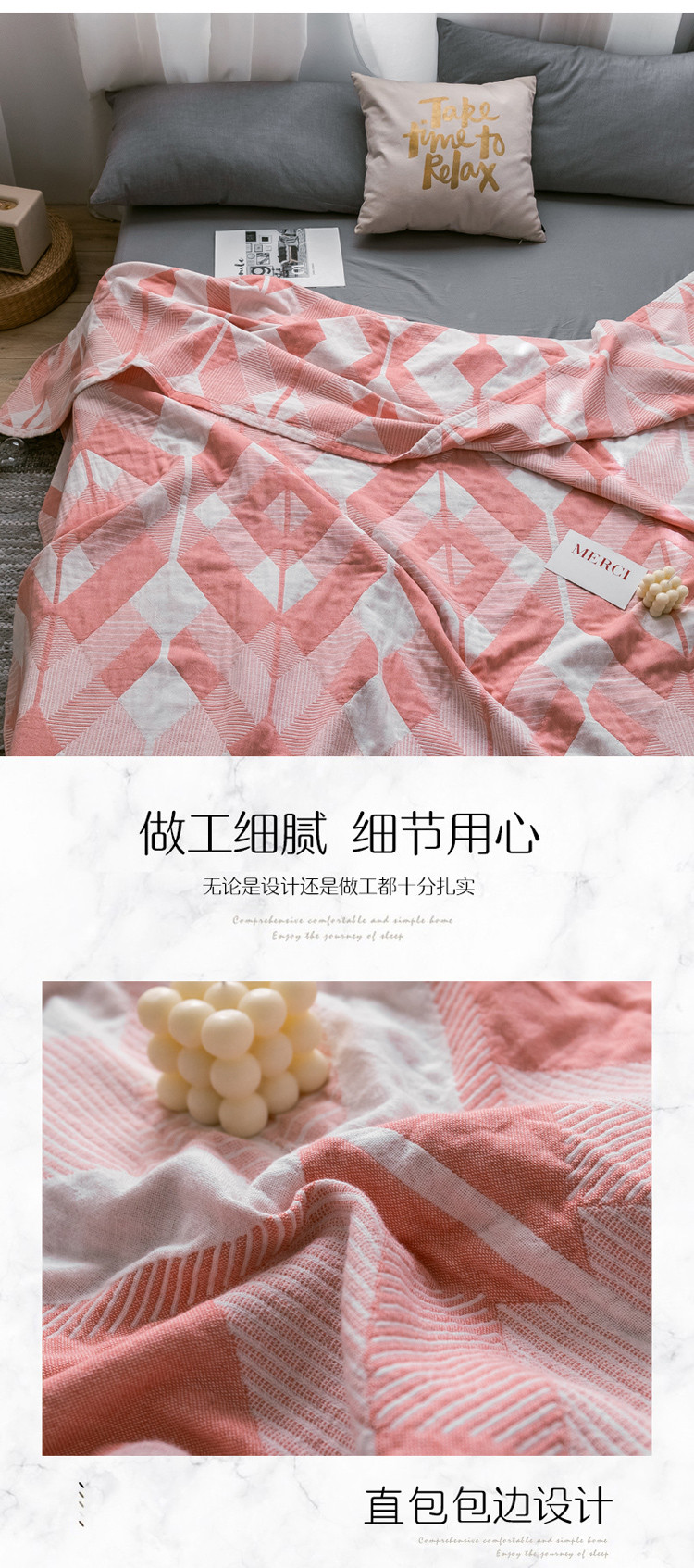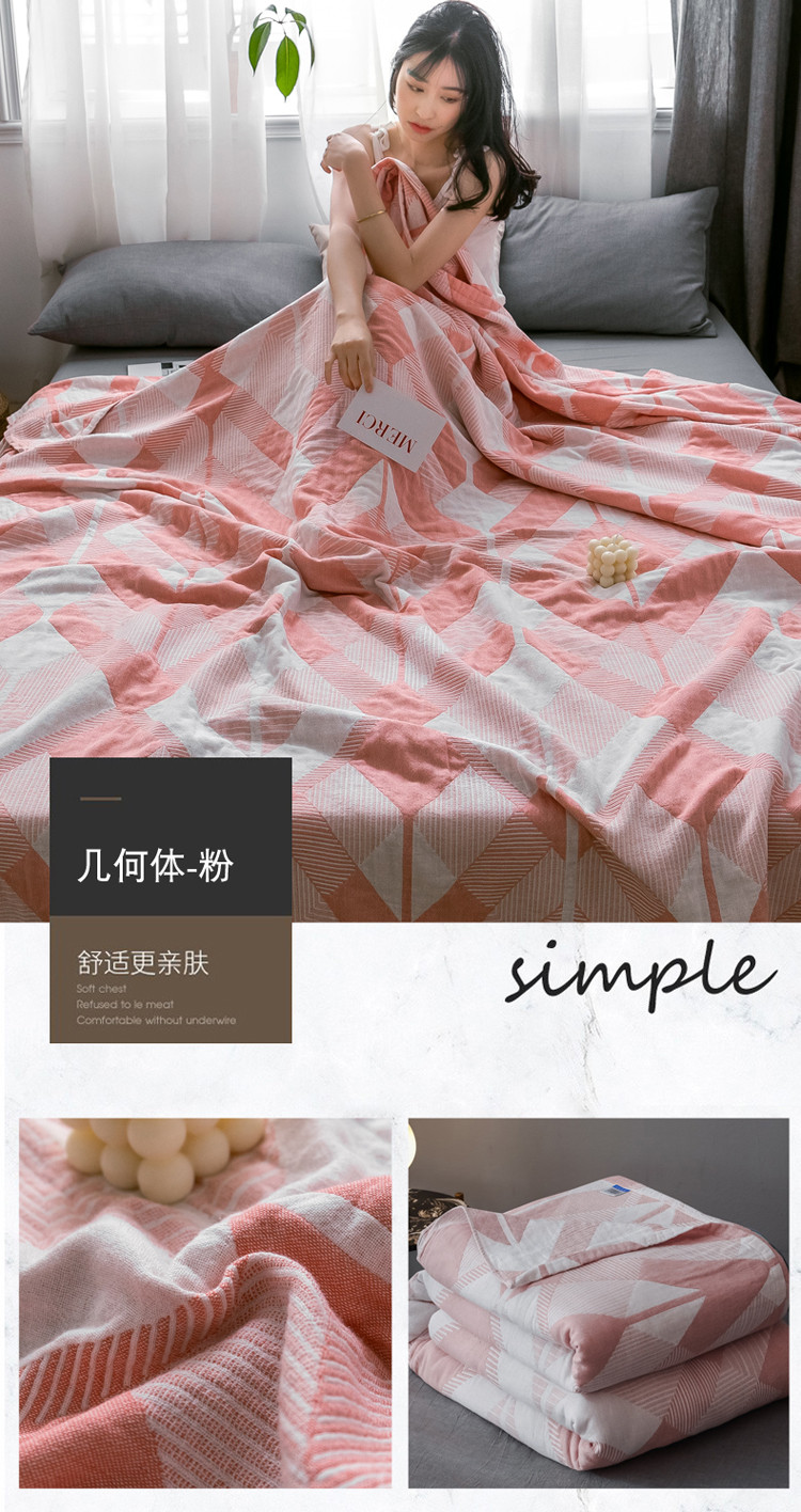 商品名称:朴尔 2021爆款三层水洗棉全棉纱布毛巾被 几何体-粉