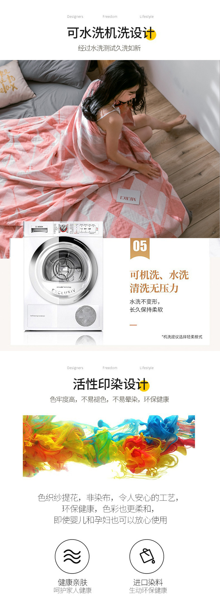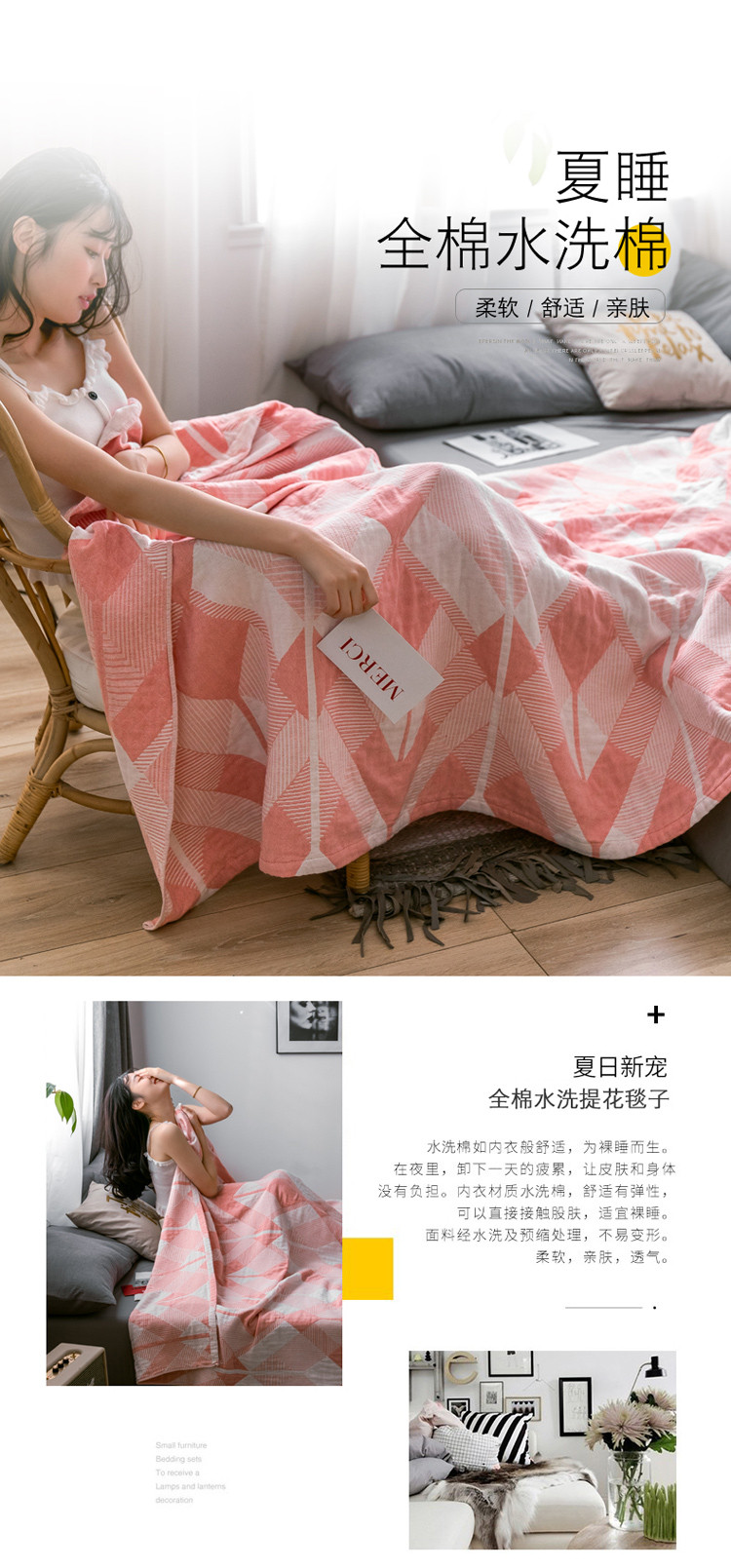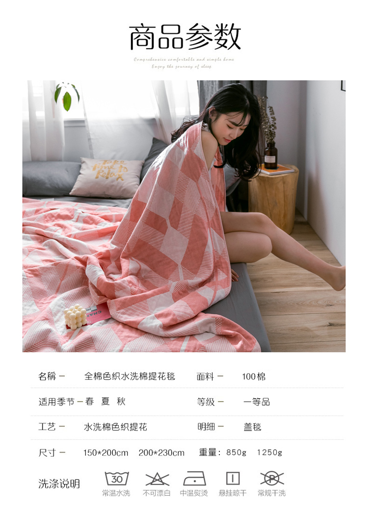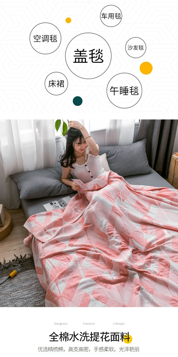 商品名称:朴尔 2021爆款三层水洗棉全棉纱布毛巾被 几何体-粉