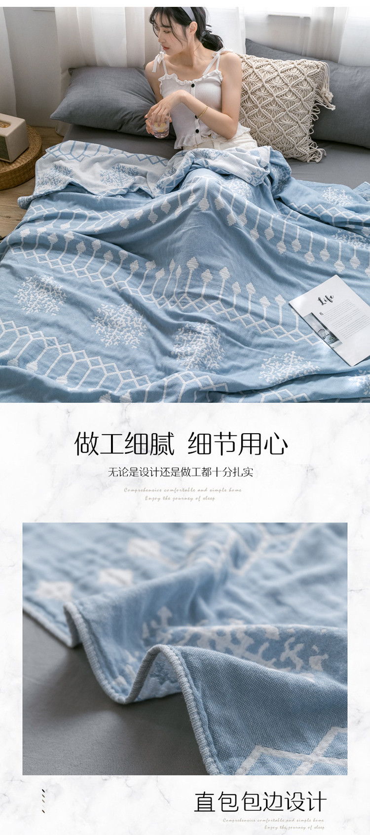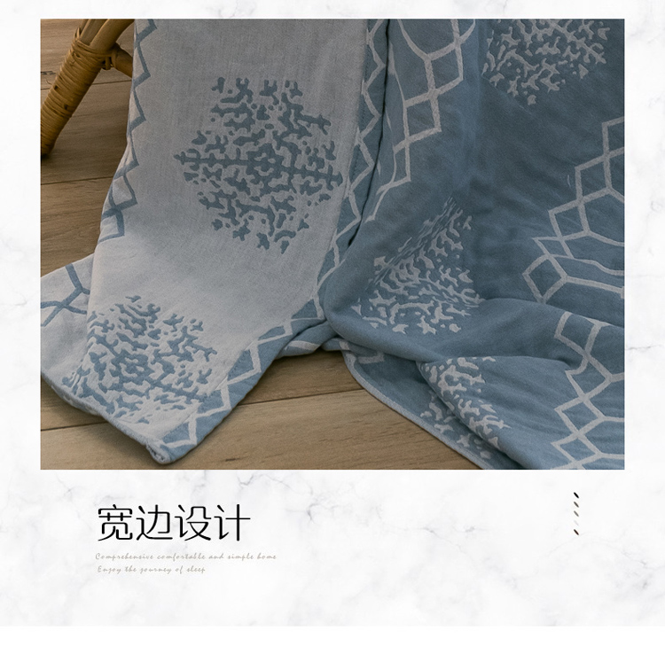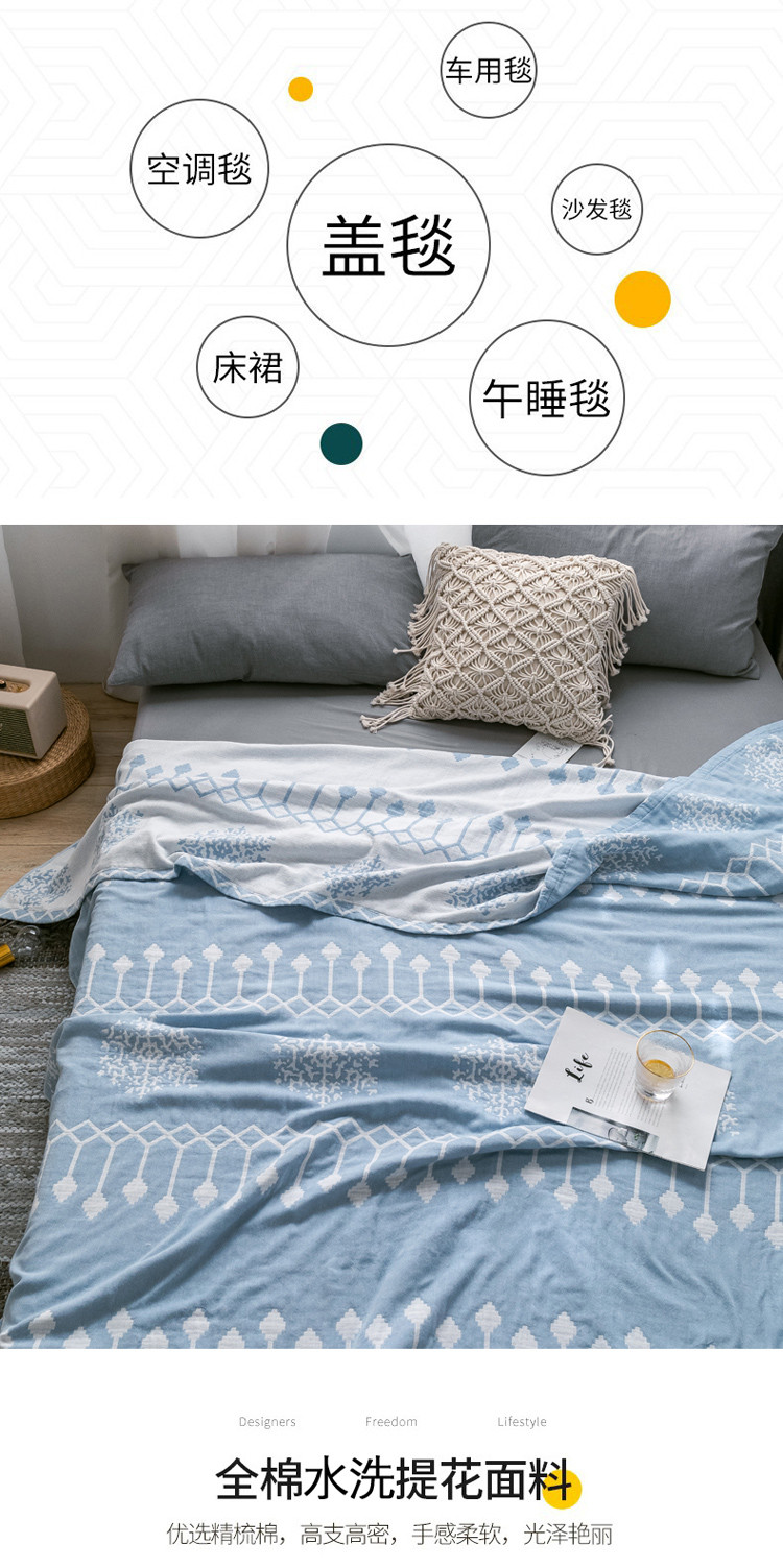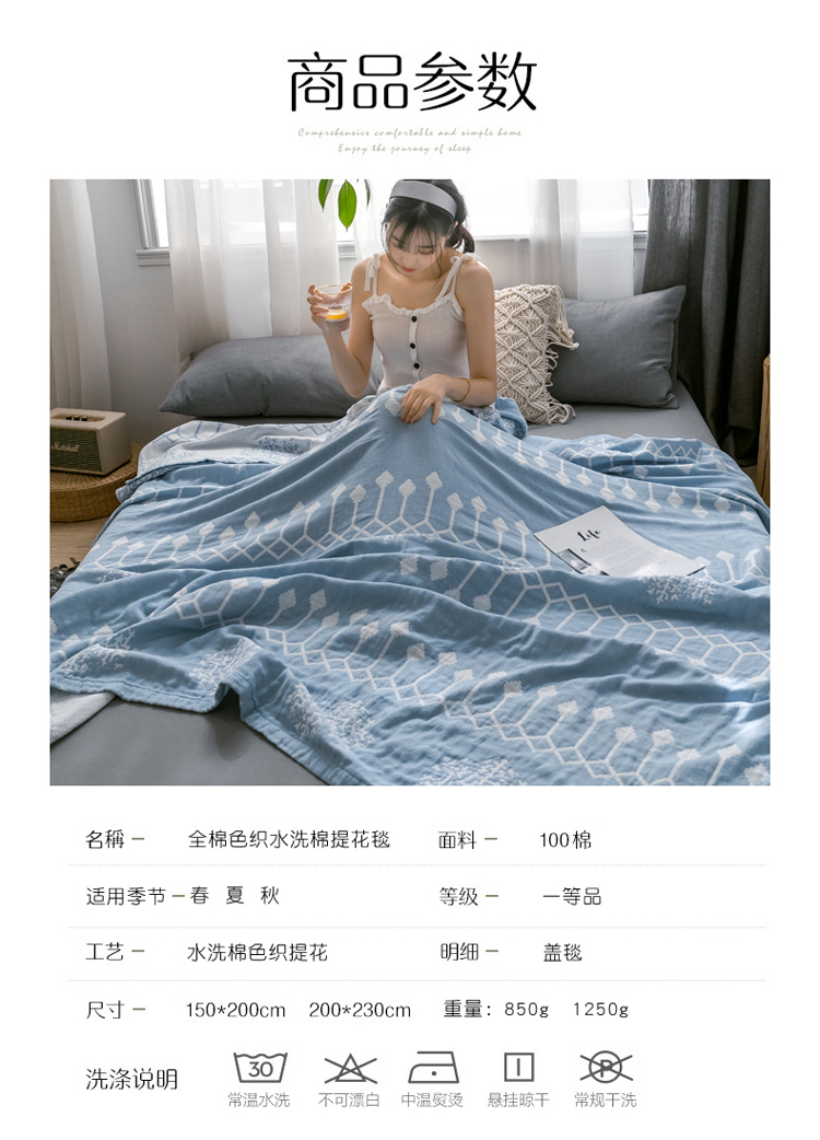 商品名称:朴尔 2021爆款三层水洗棉全棉纱布毛巾被 印第安-冰蓝