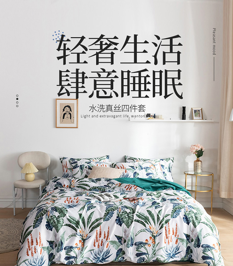 商品名称:琪格格纺织 2022新款水洗真丝印花四件套 回归自然