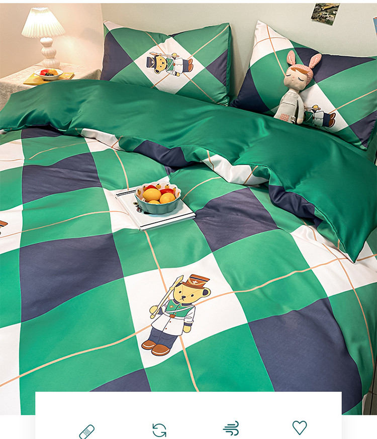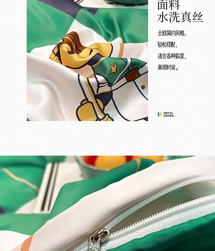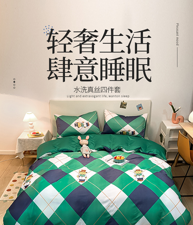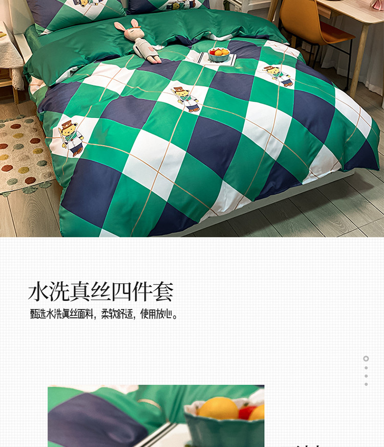 琪格格纺织 2022新款水洗真丝印花四件套 护卫熊