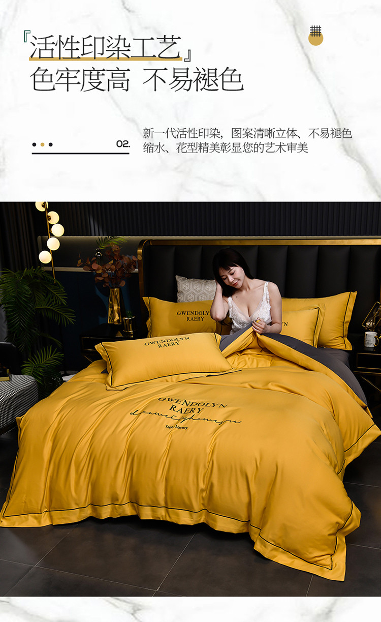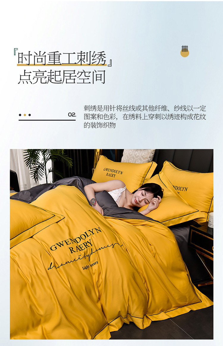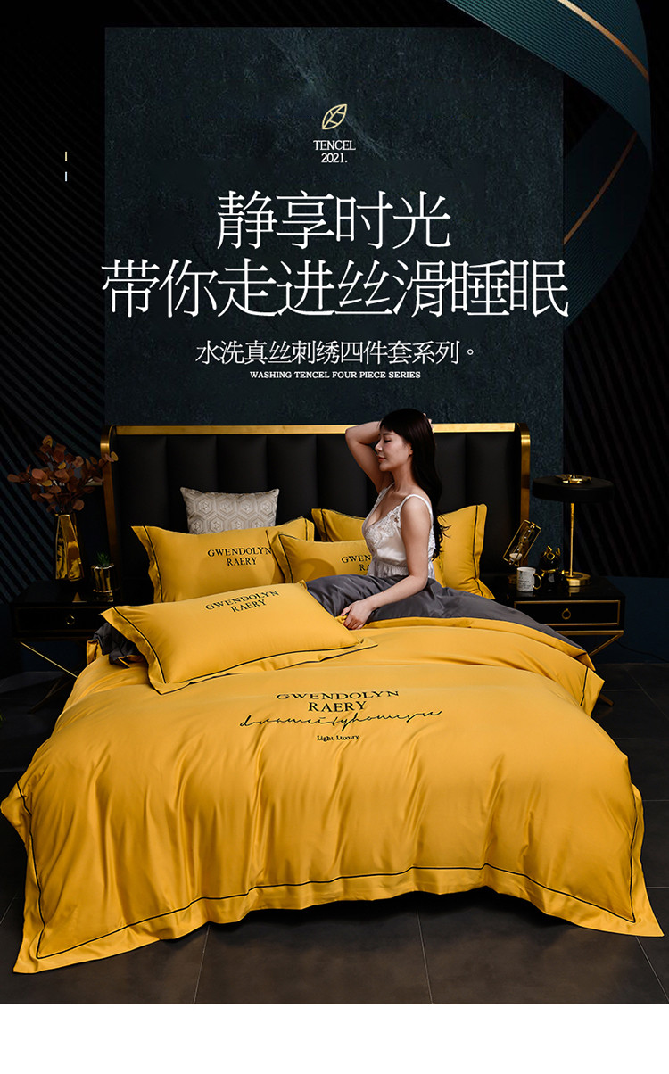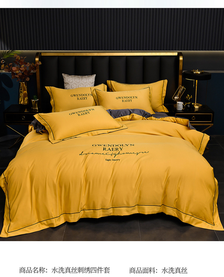 商品名称:意尚风情2023新款绣花水洗真丝四件套 千韵-姜黄