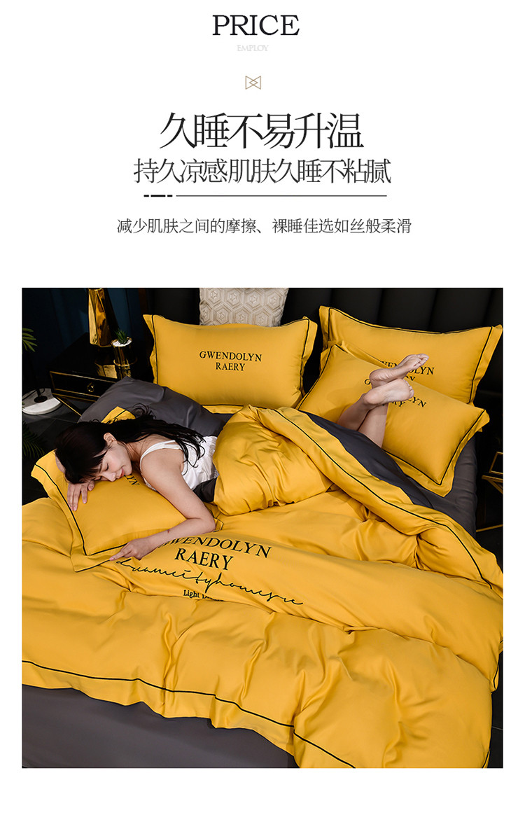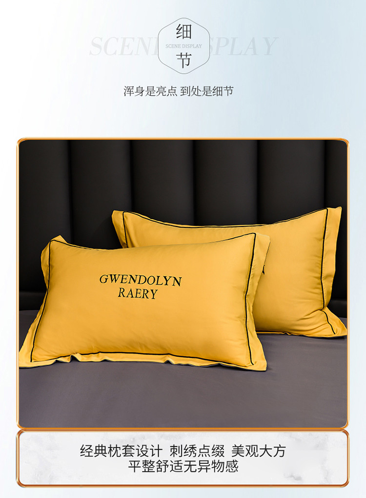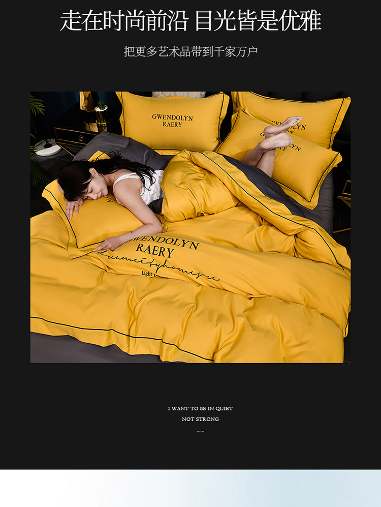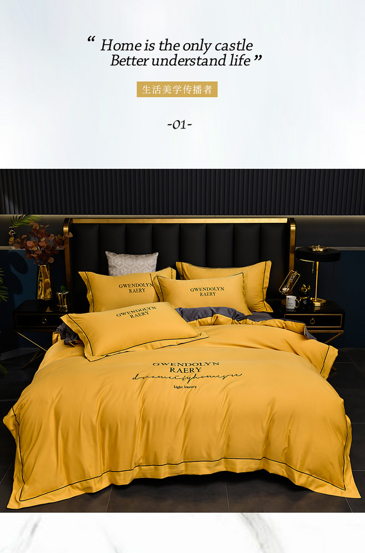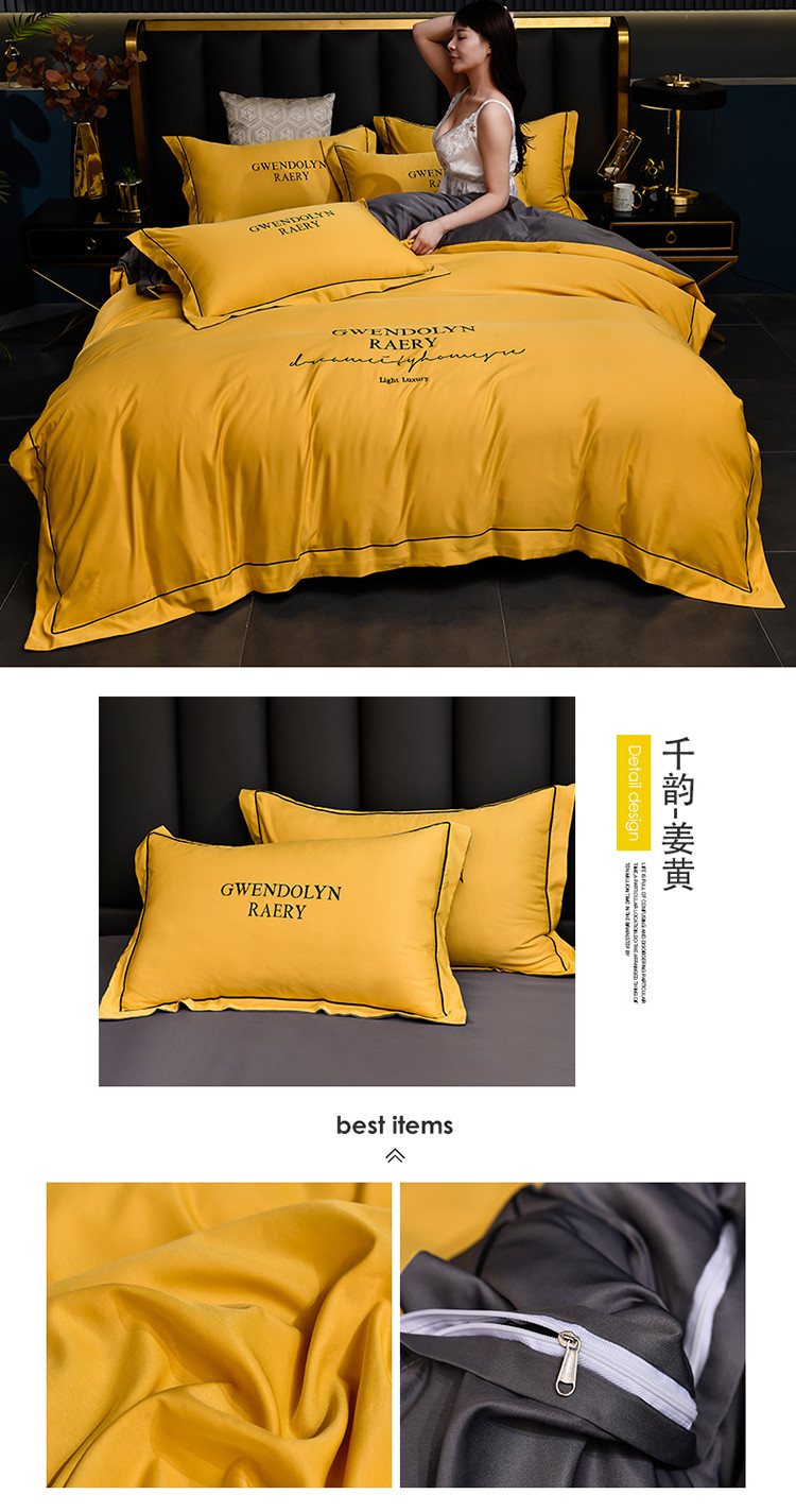 商品名称:意尚风情2023新款绣花水洗真丝四件套 千韵-姜黄