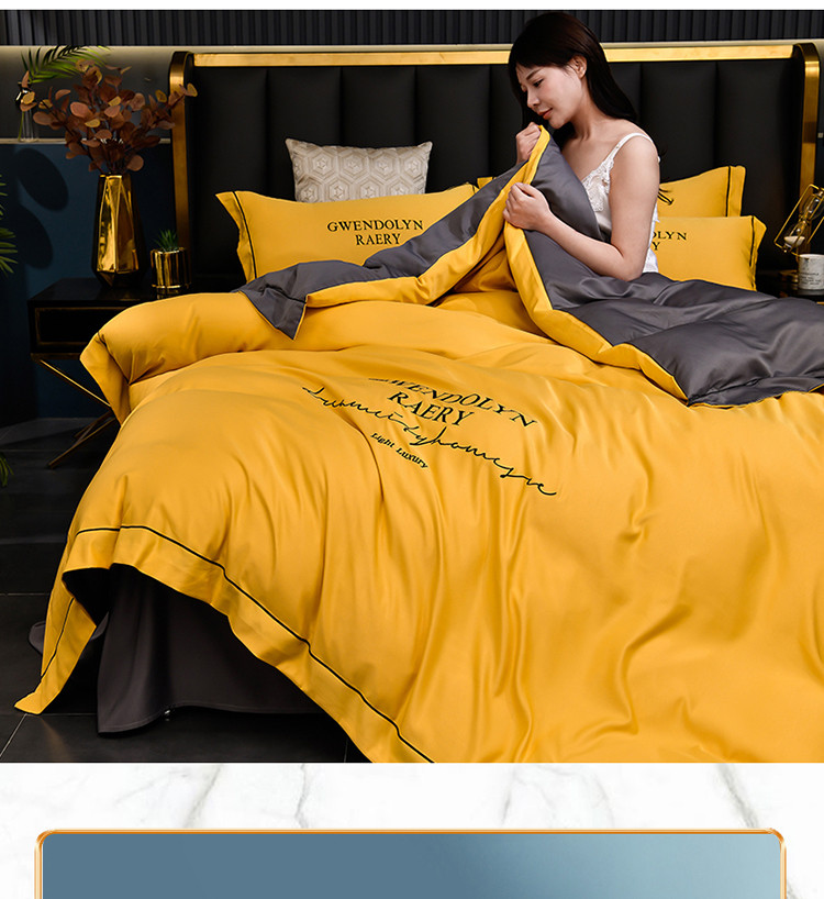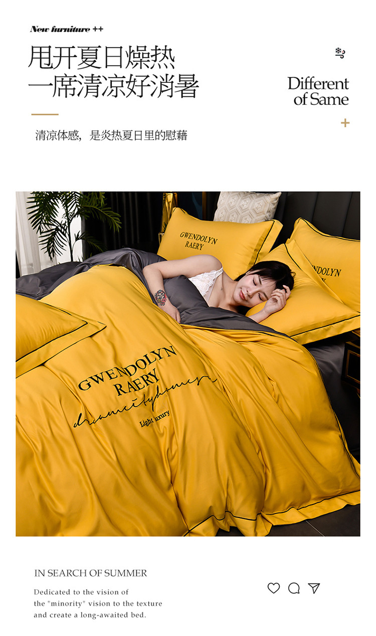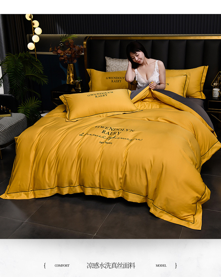 意尚风情2023新款绣花水洗真丝四件套 千韵-姜黄