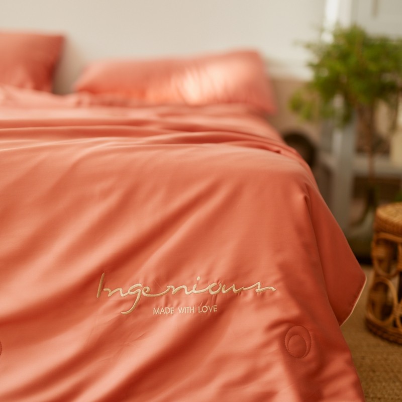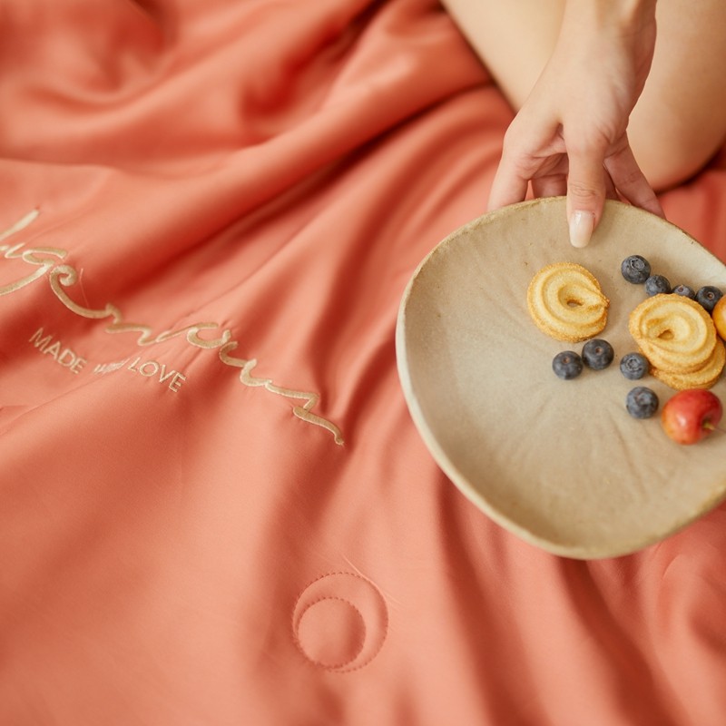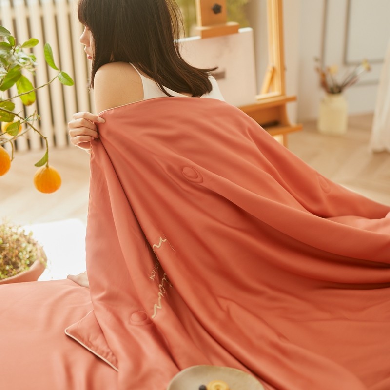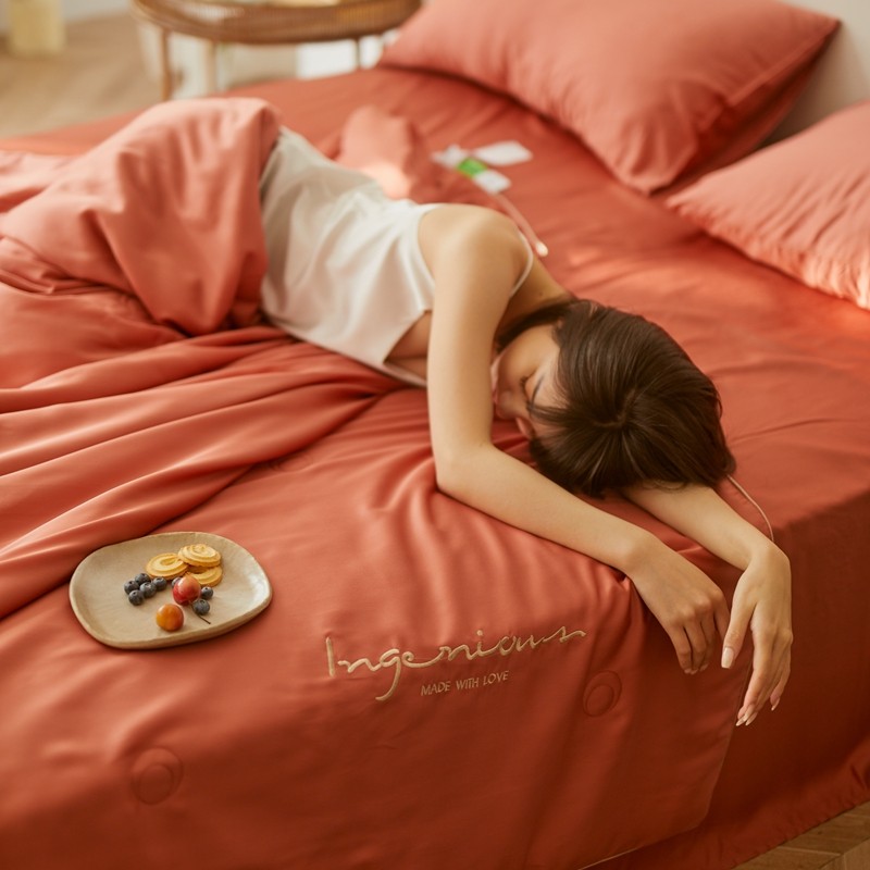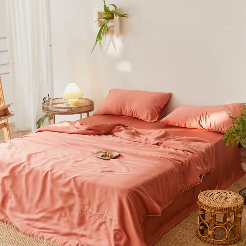 丽笙 2021新款60兰精天丝素色刺绣系列夏被 椰棕红