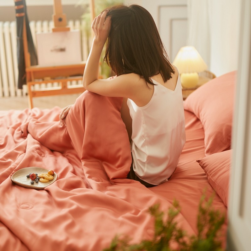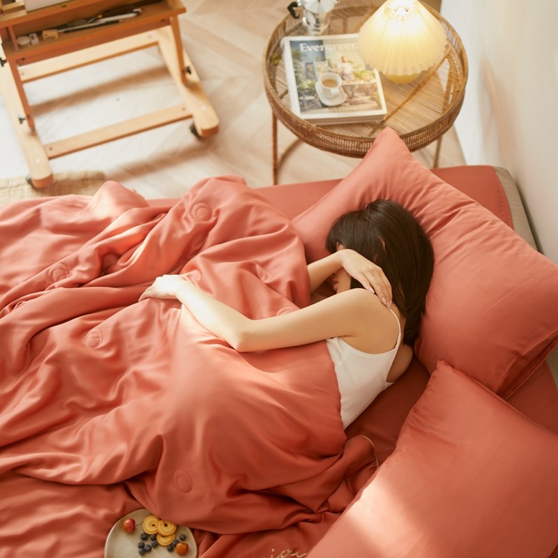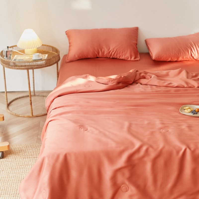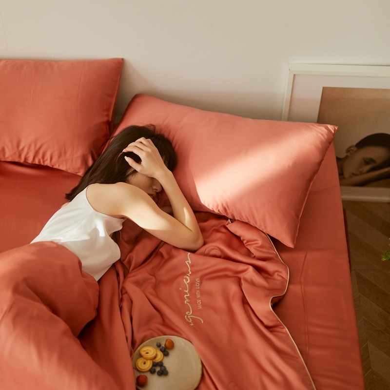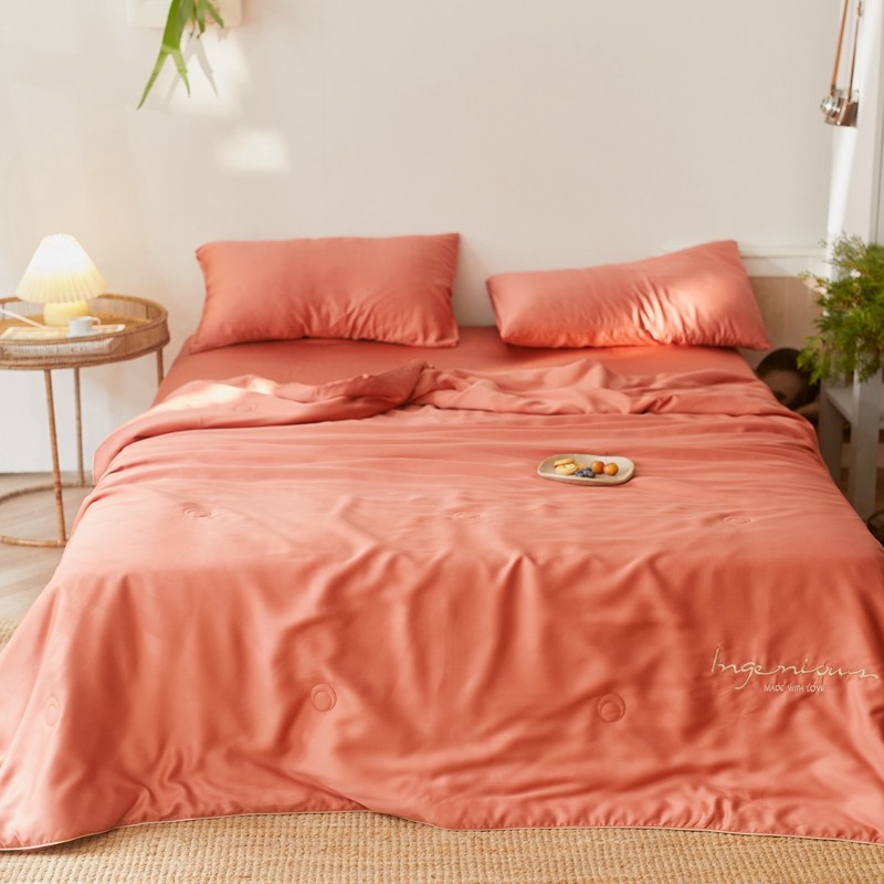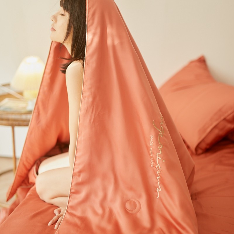 丽笙 2021新款60兰精天丝素色刺绣系列夏被 椰棕红