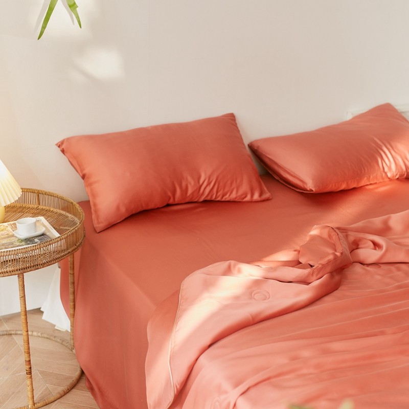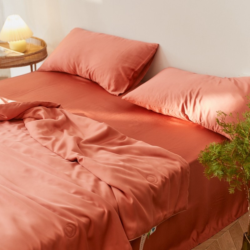 商品名称:丽笙 2021新款60兰精天丝素色刺绣系列夏被 椰棕红