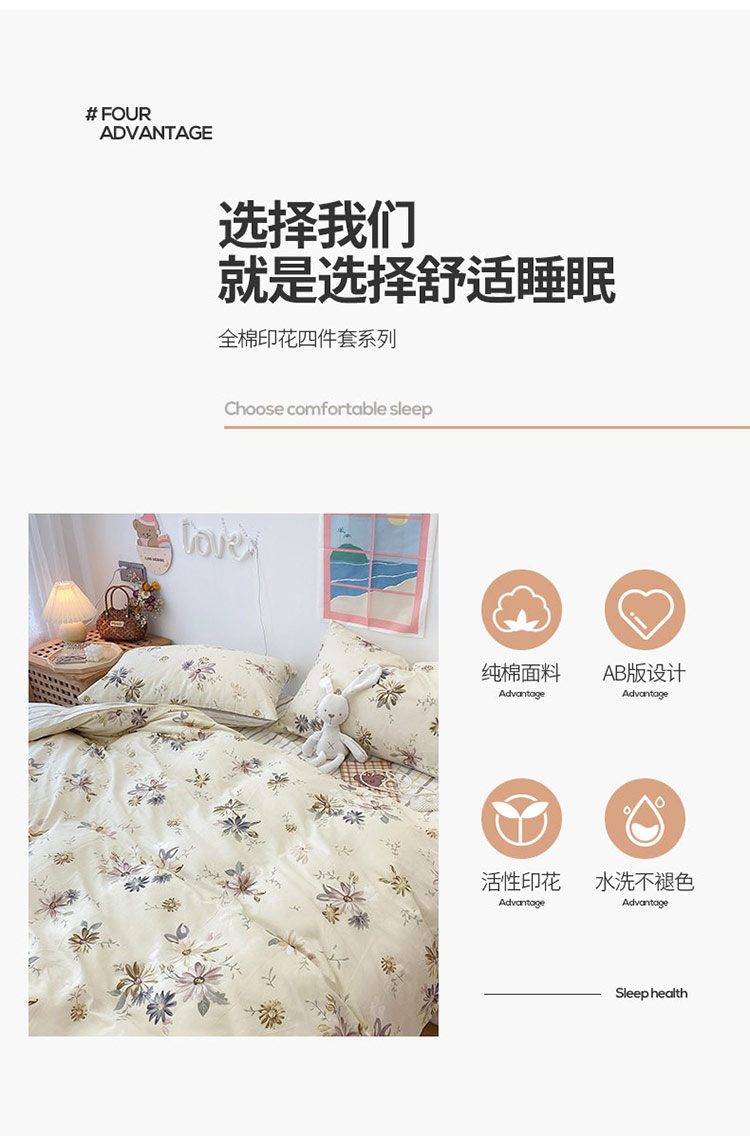 当前位置: 91家纺网 > 商品网购 > 床品套件 > 四件套 > 全棉普通四件套 > 2022年新款卡通系列全棉印花四件套实拍图直播爆款 木槿