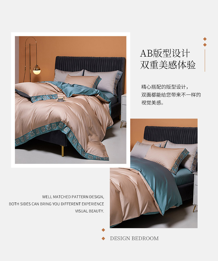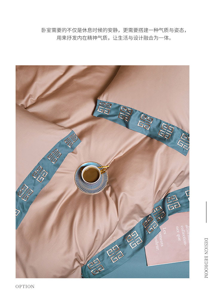爱缦2021宫系列100支长绒棉奥棉四件套棚拍图黎莎棕景泰蓝