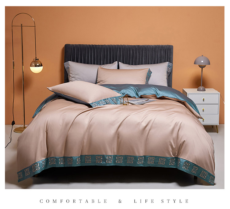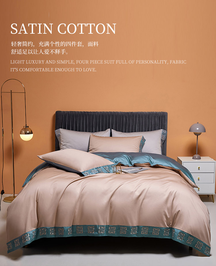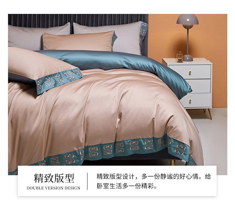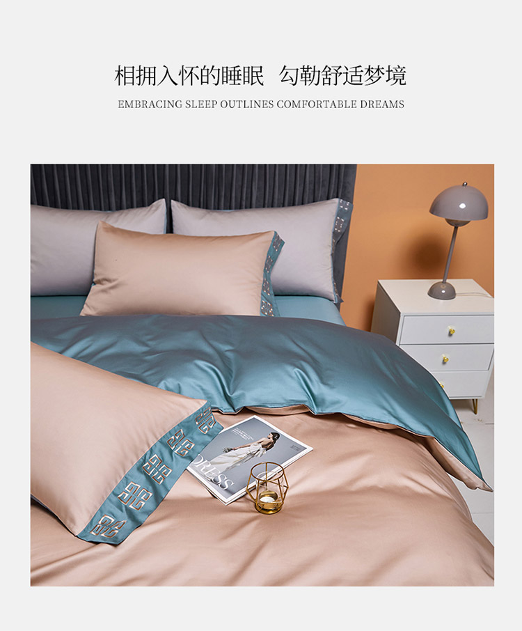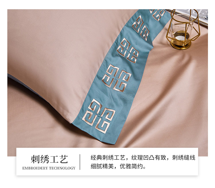 商品名称:爱缦2021宫系列100支长绒棉奥棉四件套棚拍图黎莎棕景泰蓝