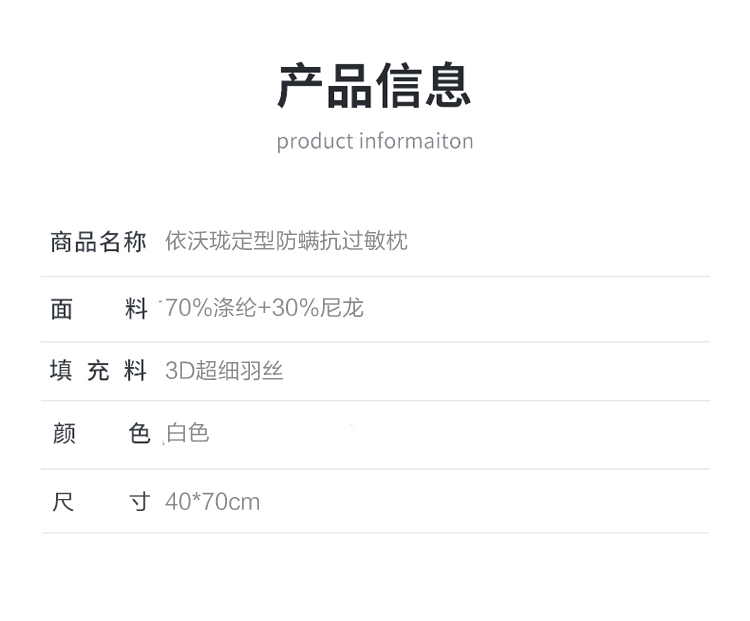当前位置: 91家纺网 > 商品网购 > 枕头/枕芯/保健枕/颈椎枕 > 普通枕芯 > 多点 2021新款依沃珑定型防螨抗过敏枕40*70/只 白色