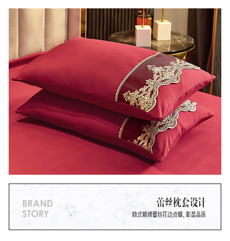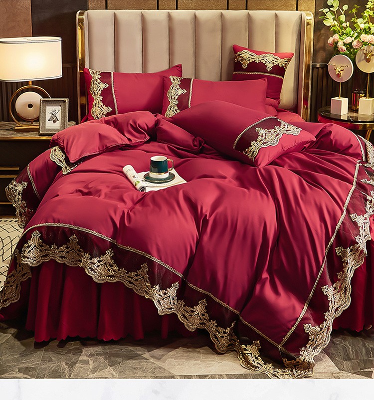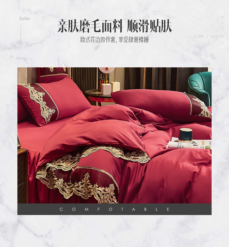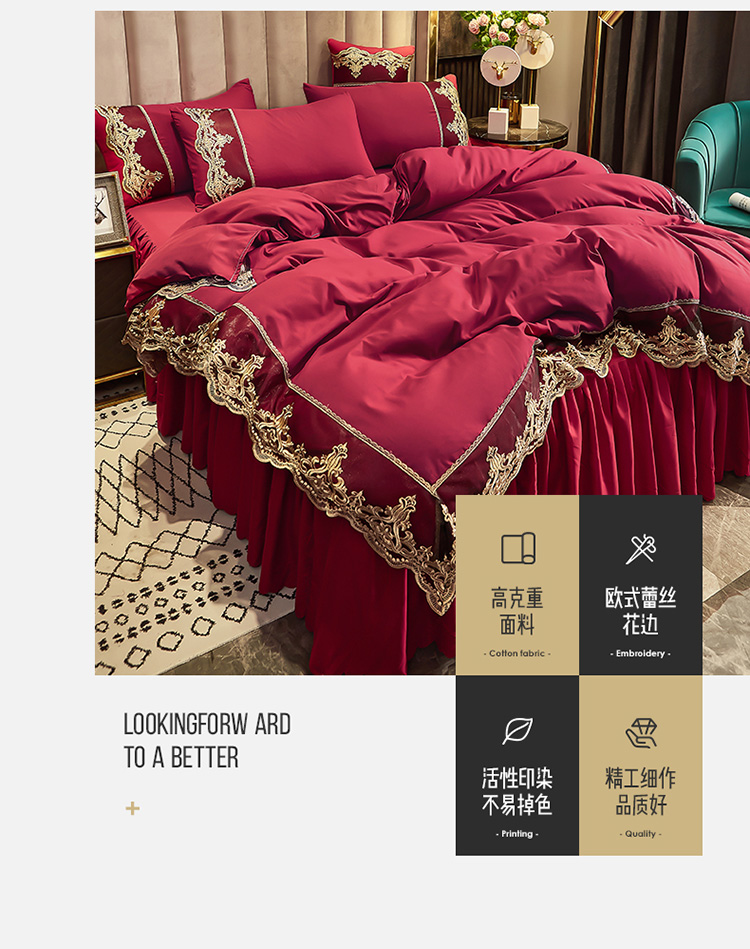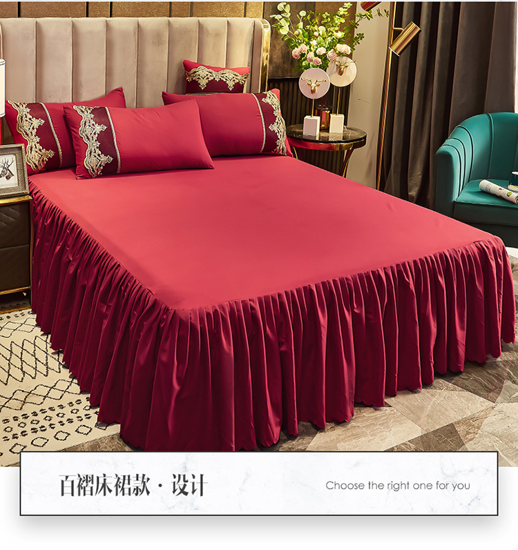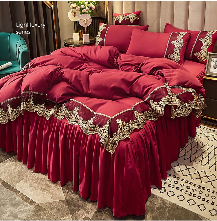 商品名称:莉莉安 2025新款亲肤磨毛欧式花边床裙四件套 莫娜-胭脂红