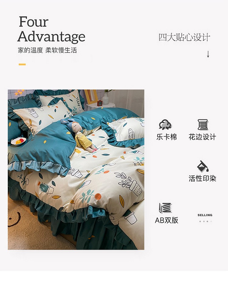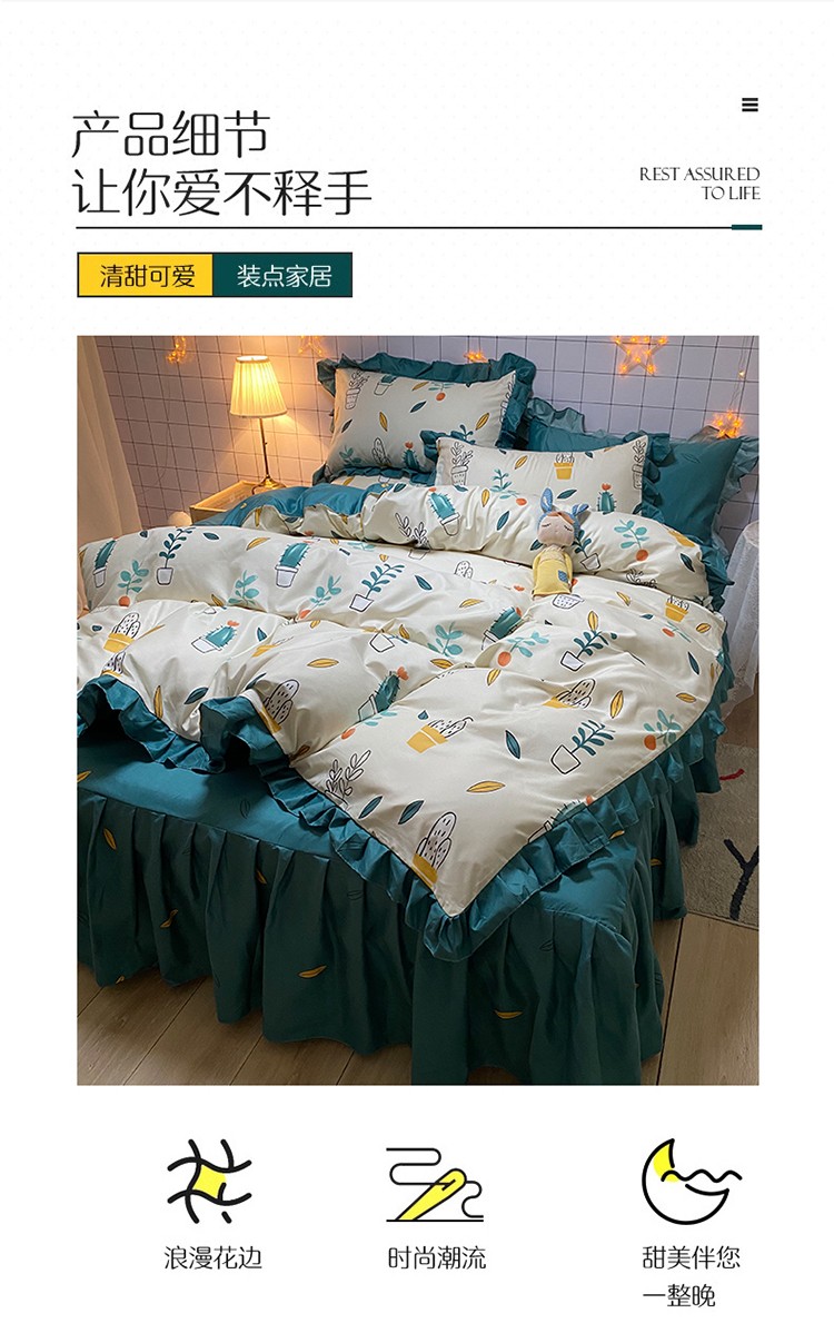 当前位置: 91家纺网 > 商品网购 > 床品套件 > 四件套 > 化纤普通四件套 > 艾裙海床笠 2025新款乐卡棉亲肤韩版小清新四件套小清新