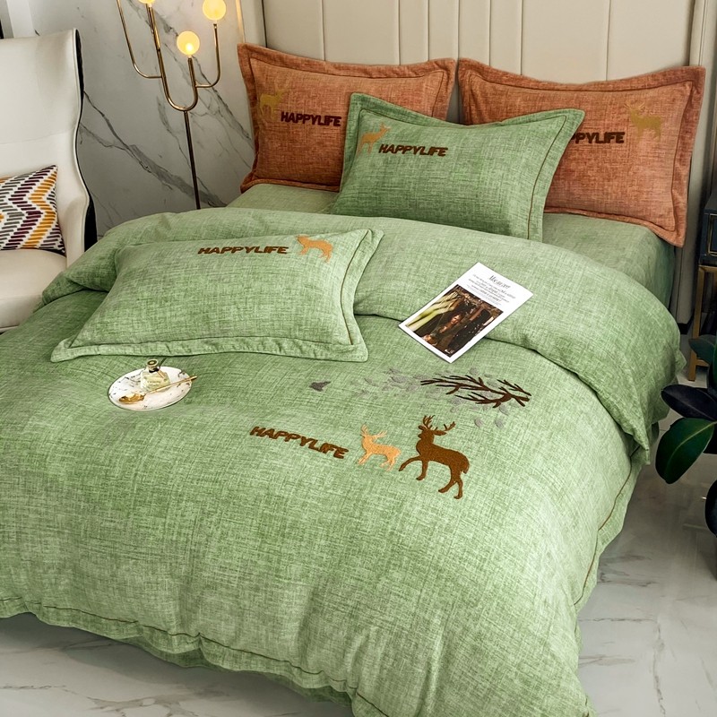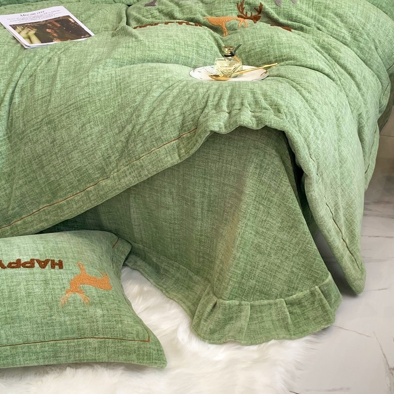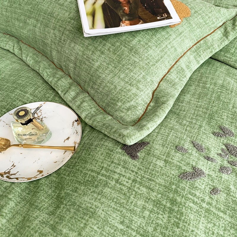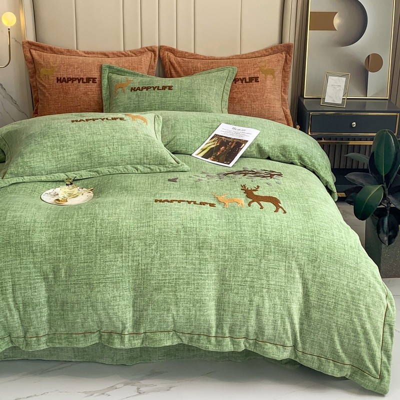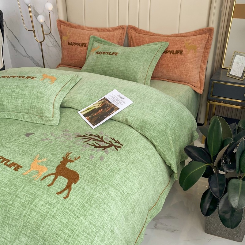 榻尚2021新款高克重婴肤绒牛奶绒毛巾绣高端四件套 绿色小鹿