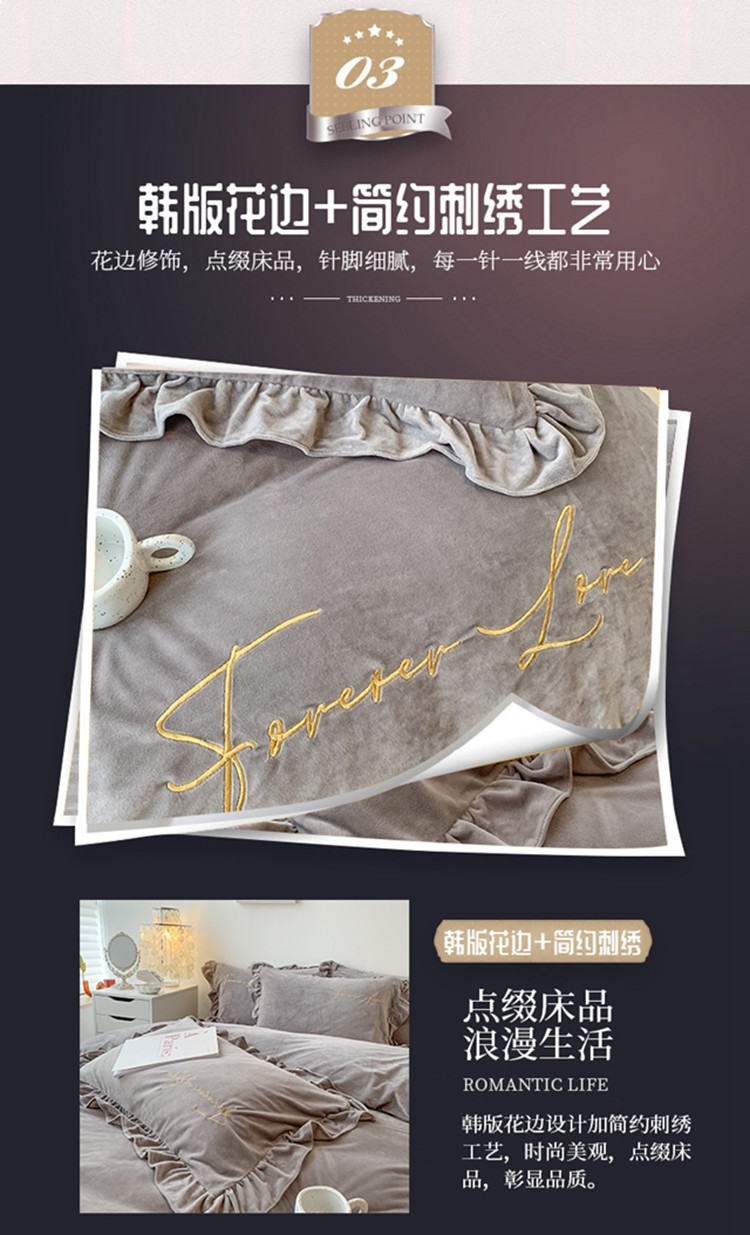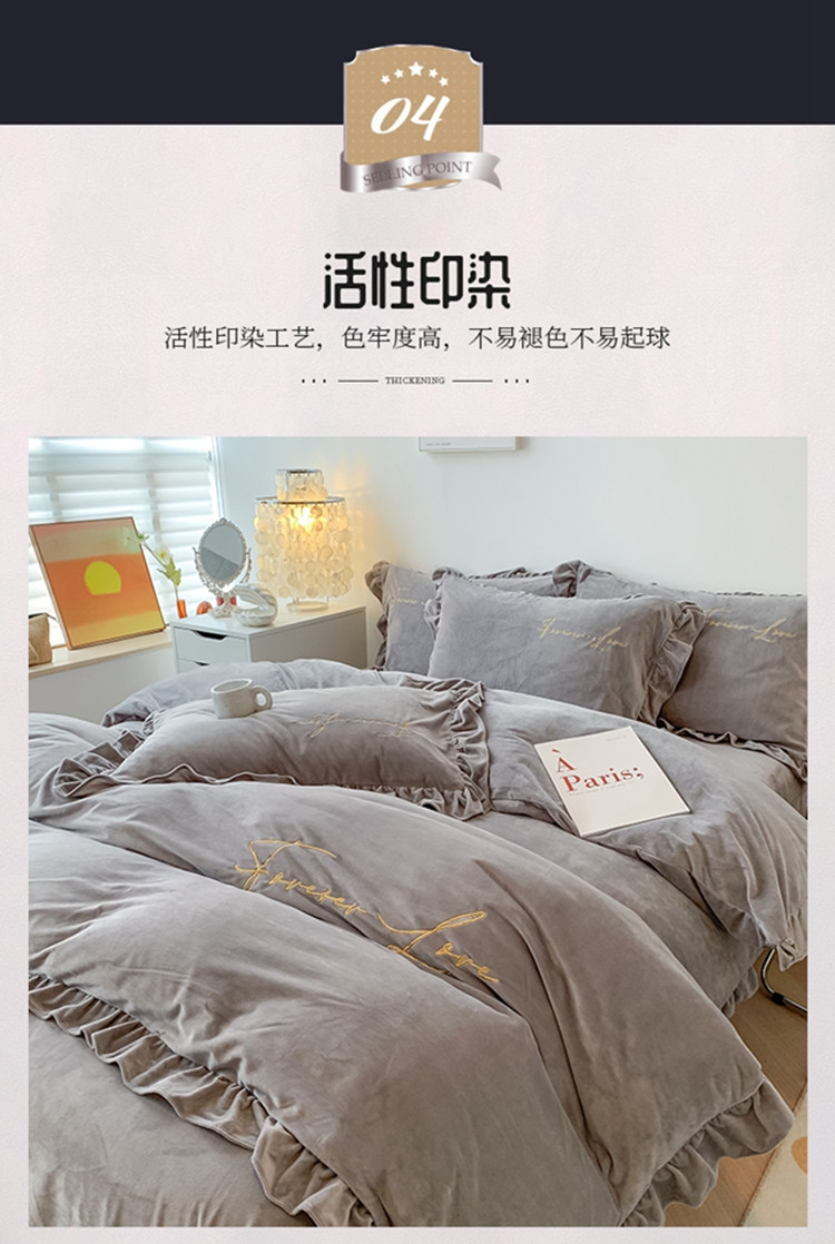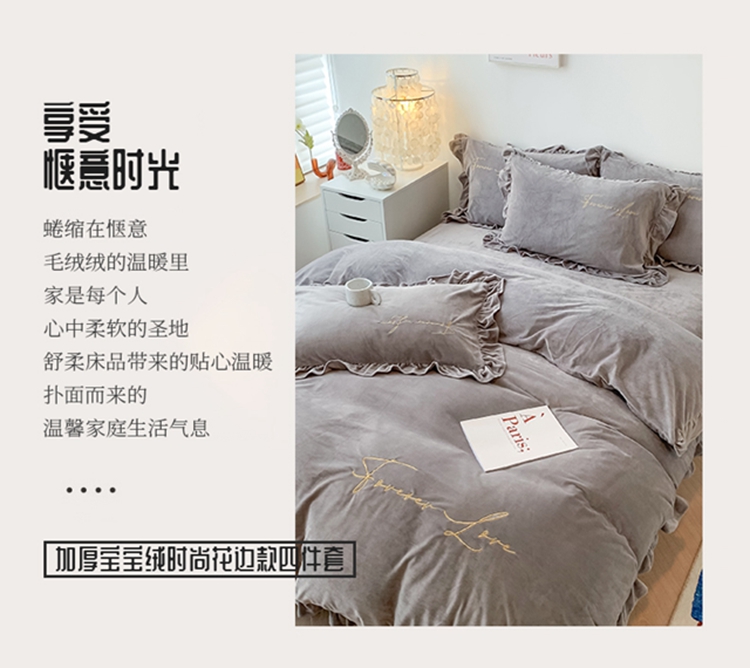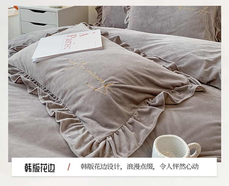 商品名称:上尚居 2021新款加厚韩版水晶绒宝宝绒四件套 艾丽丝银灰
