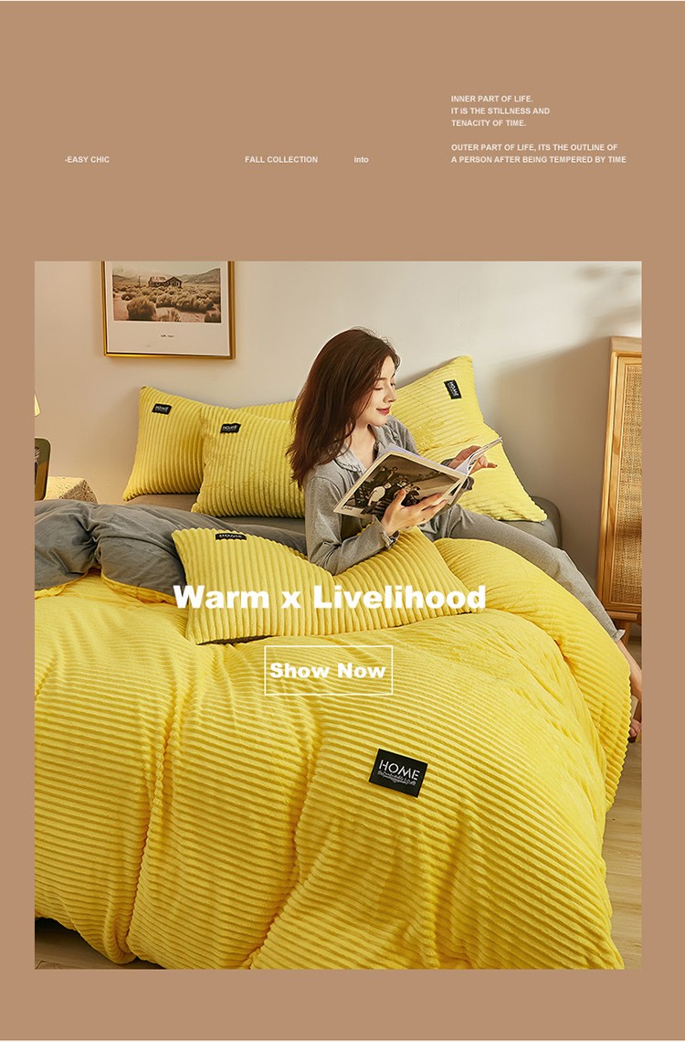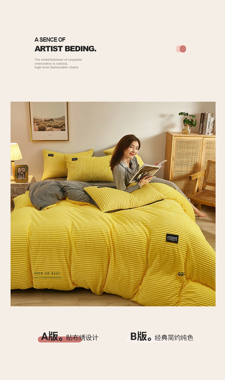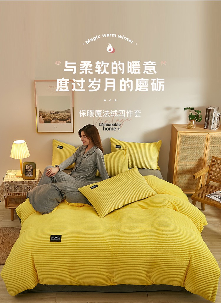 爱洛家纺 2021新款保暖魔法绒四件套 黄色