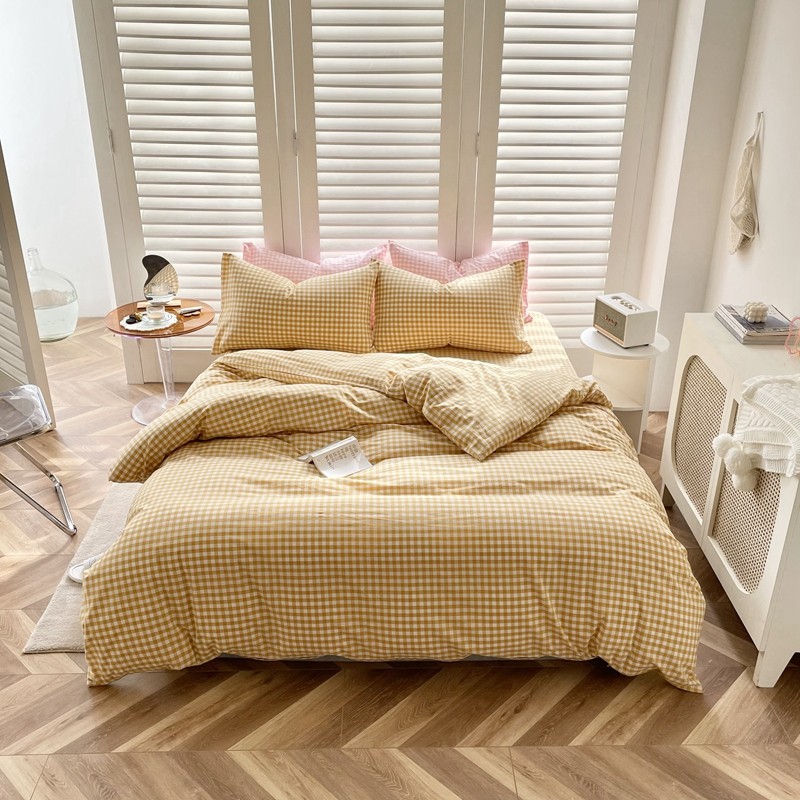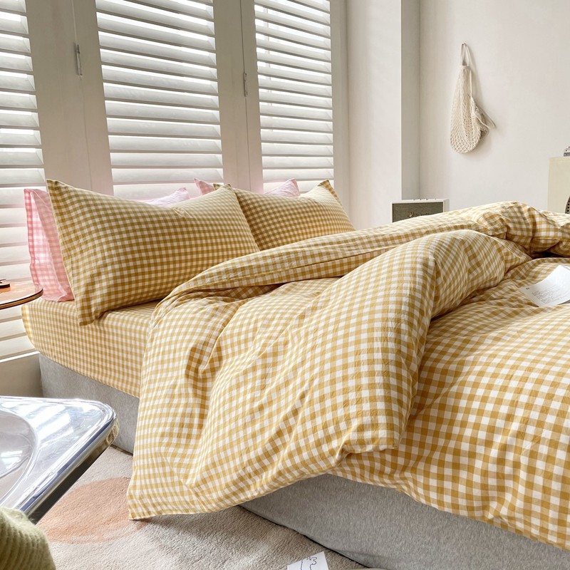 雅珺 2022新款网红爆款全棉色织水洗棉四件套AA版 姜黄