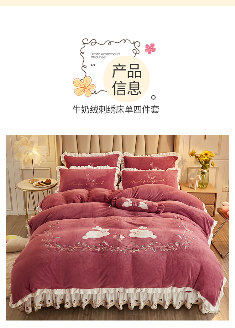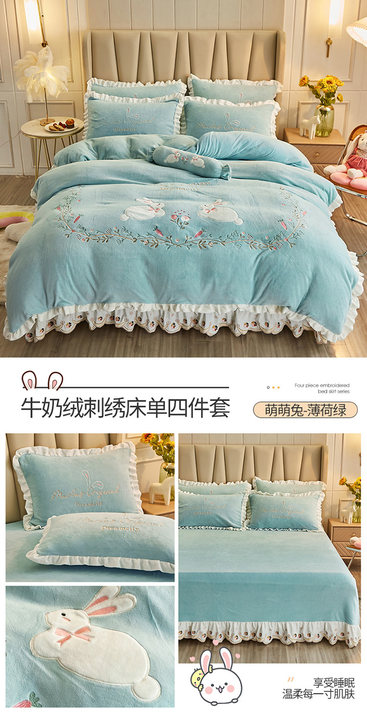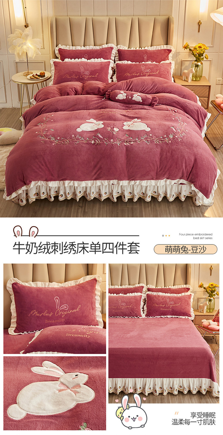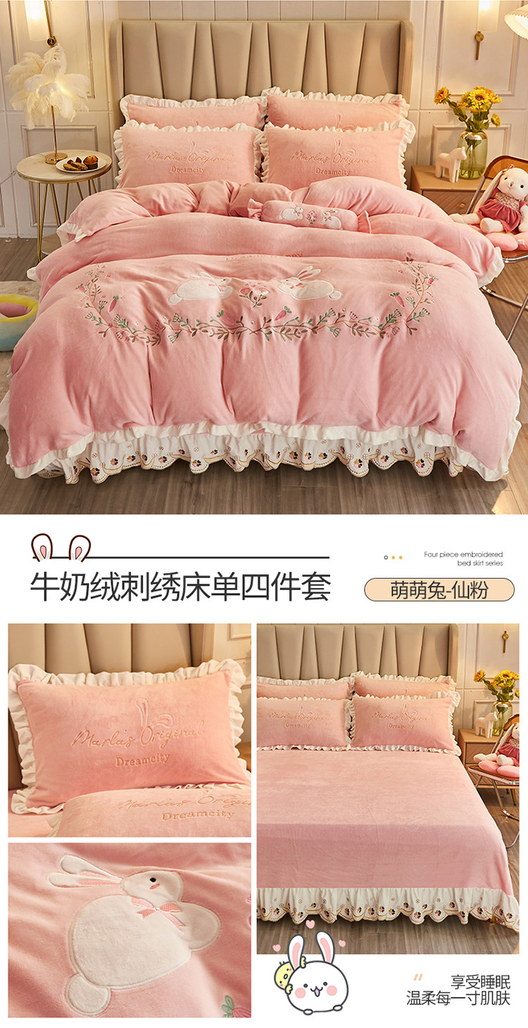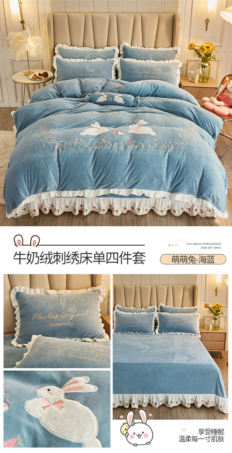 (总)宜凡 2021新款牛奶绒绣花兔床单四件套