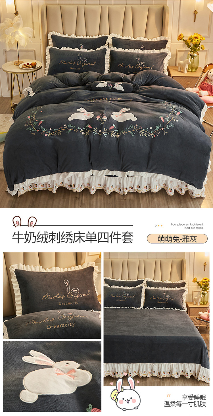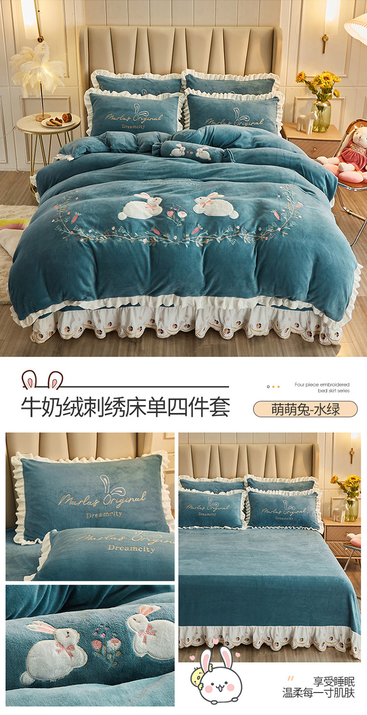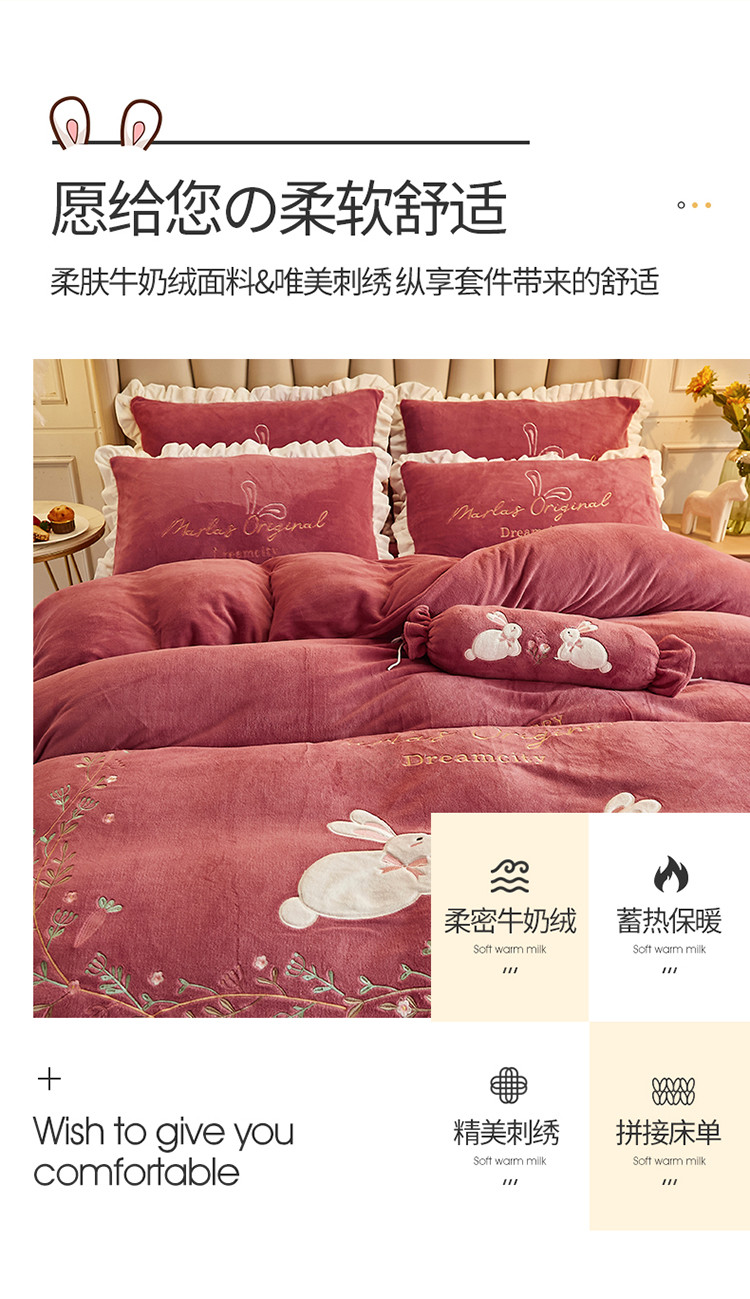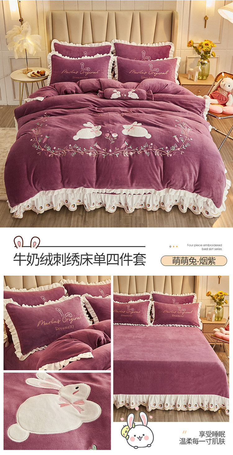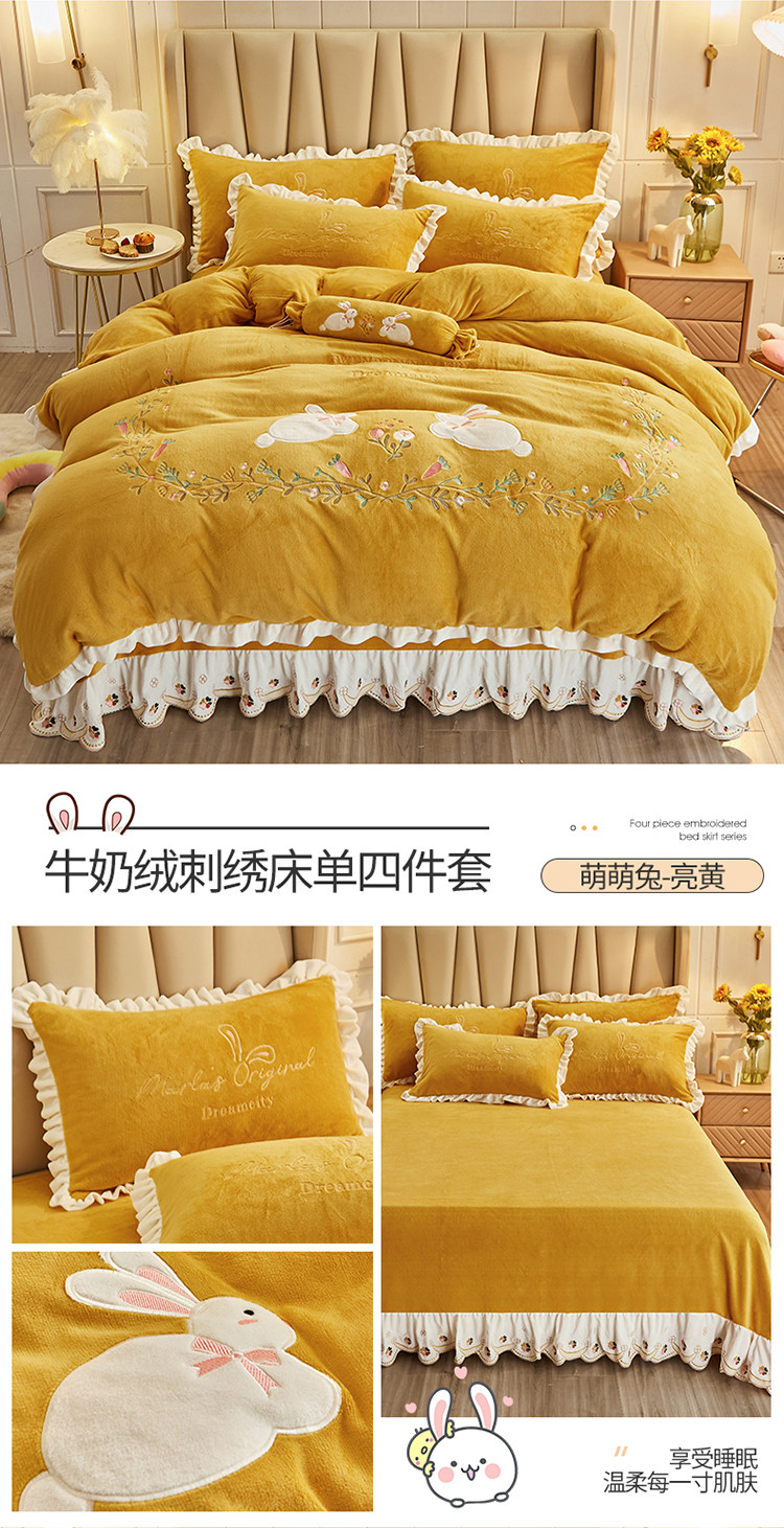 (总)宜凡 2021新款牛奶绒绣花兔床单四件套