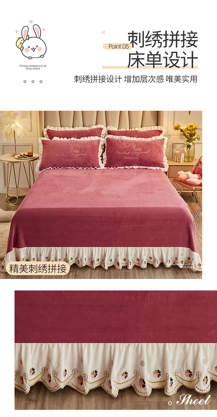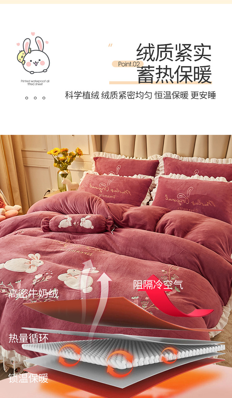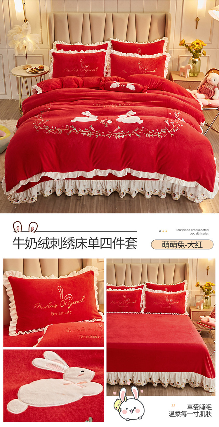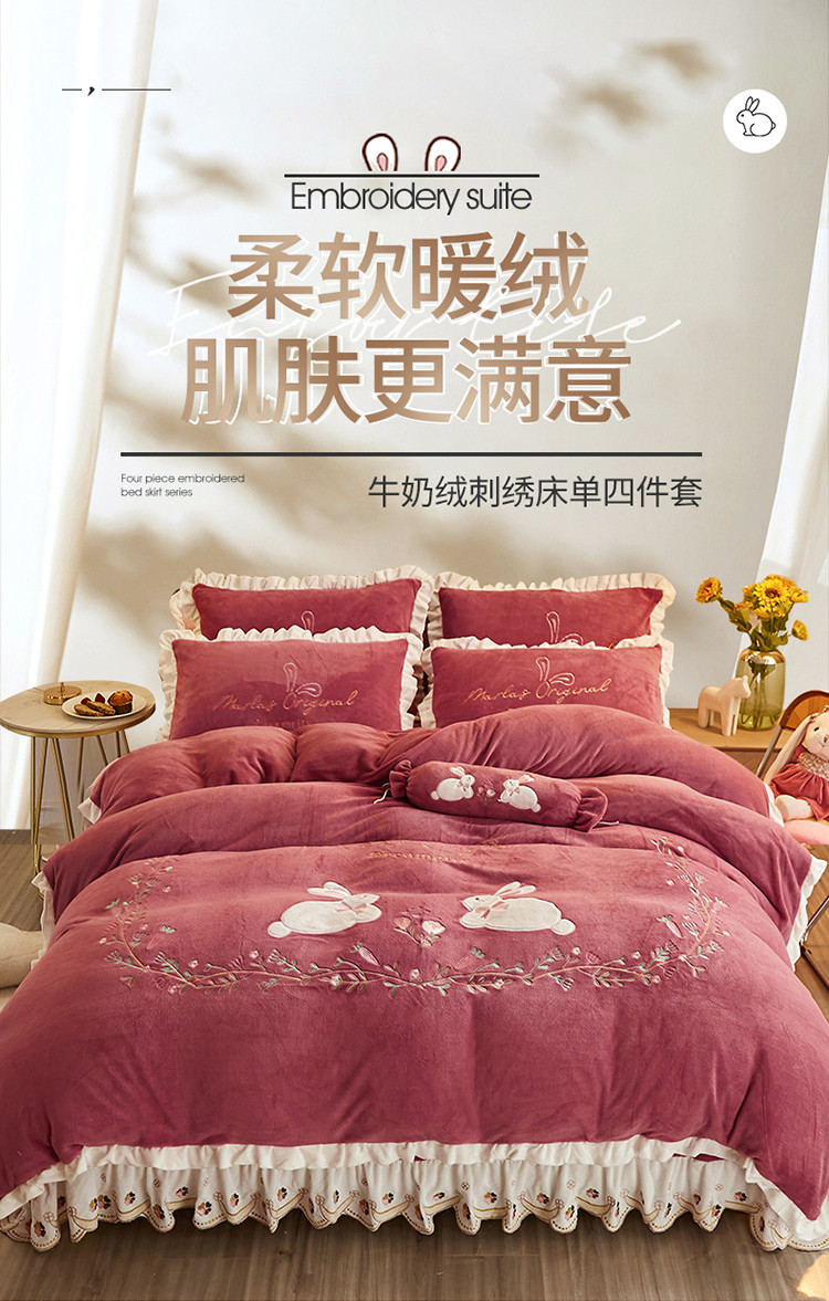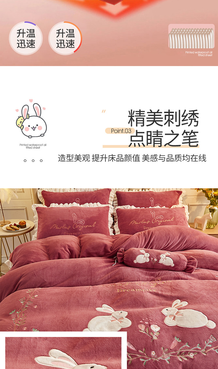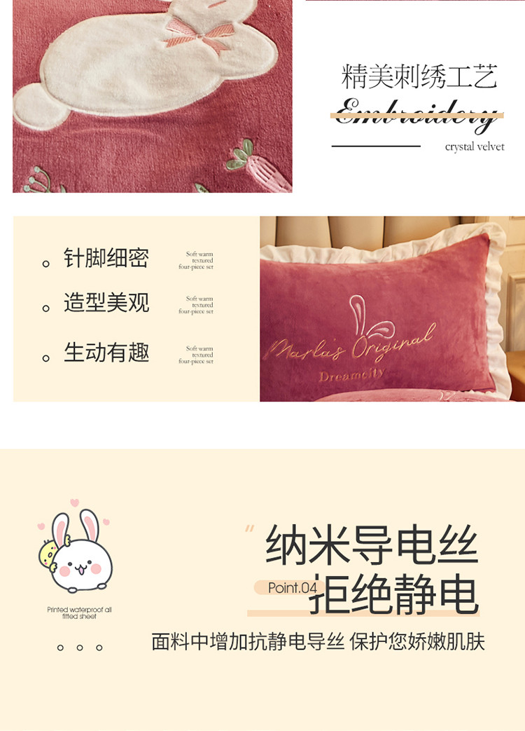 (总)宜凡 2021新款牛奶绒绣花兔床单四件套