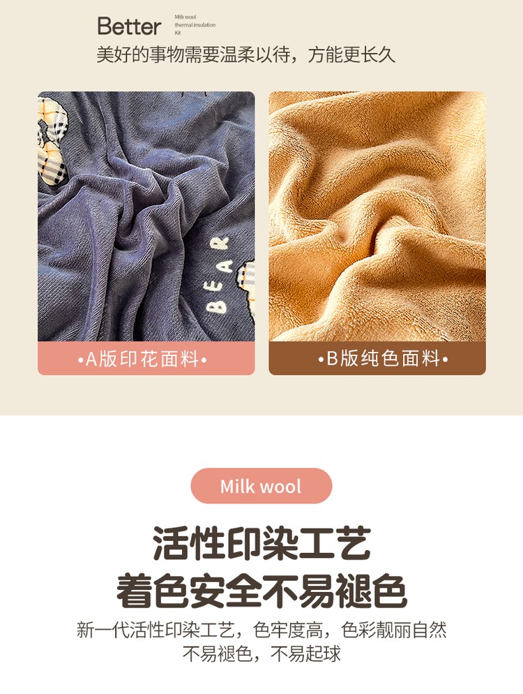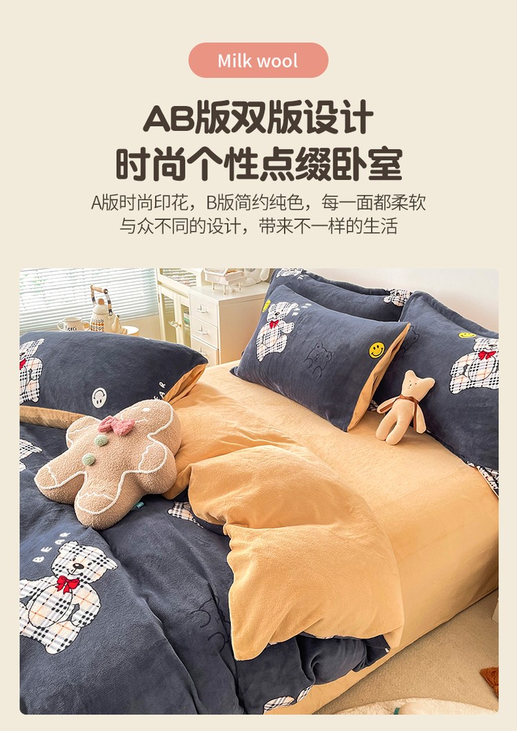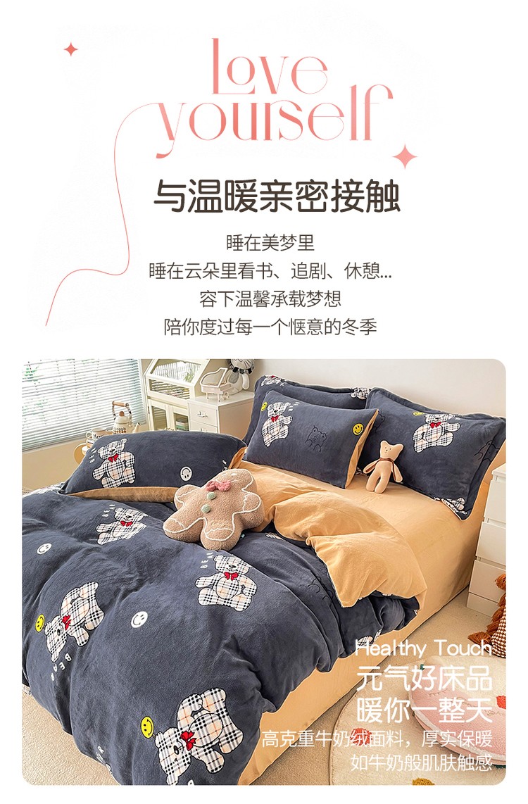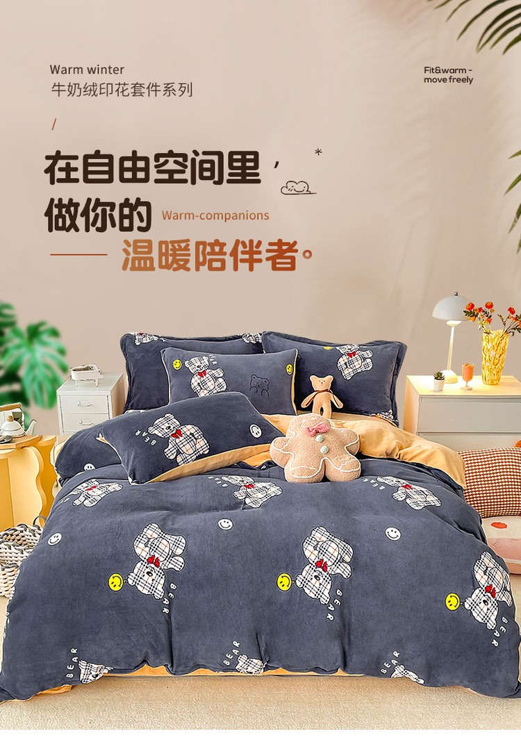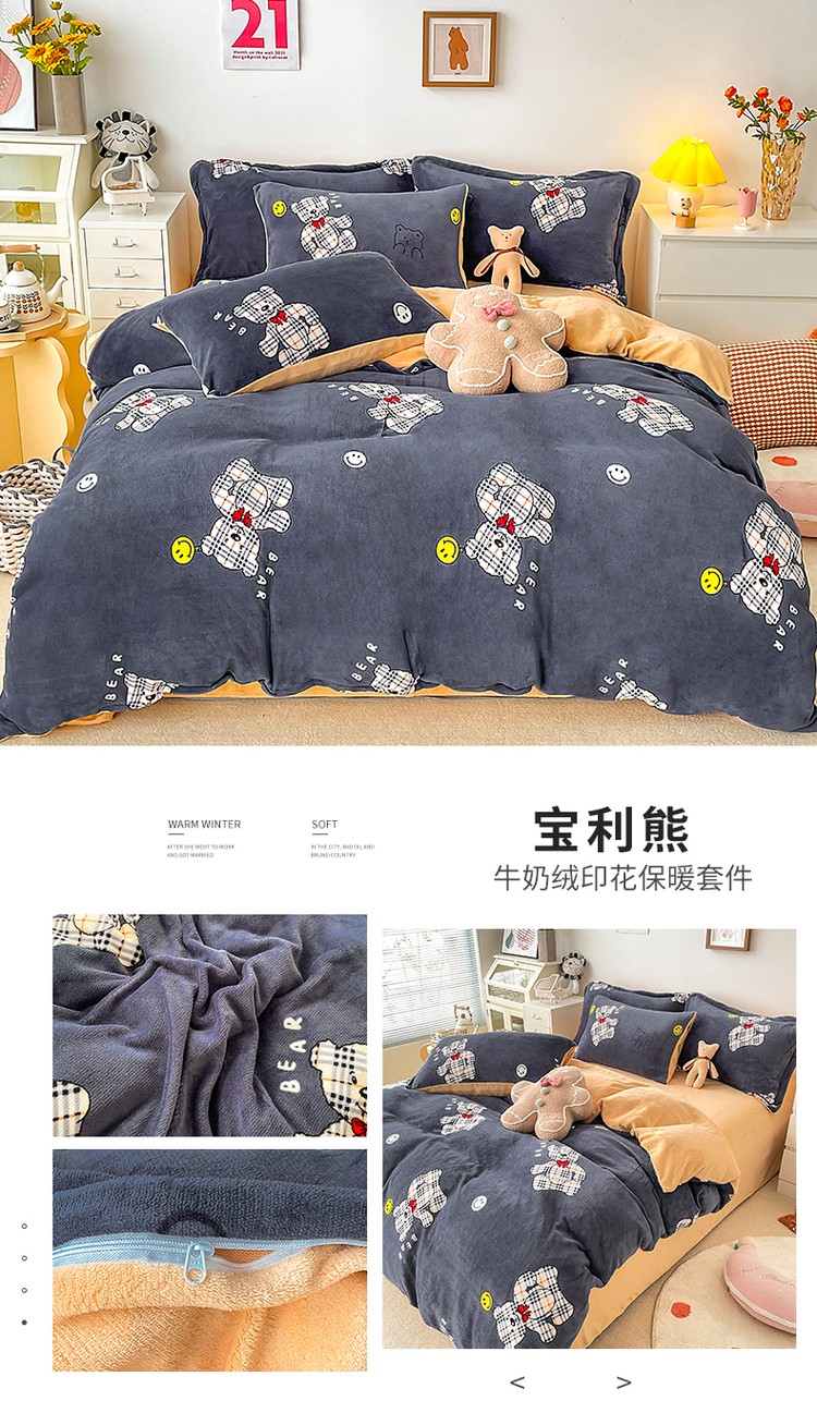 优彩 2021新款200克高克重印花牛奶绒四件套 宝利熊