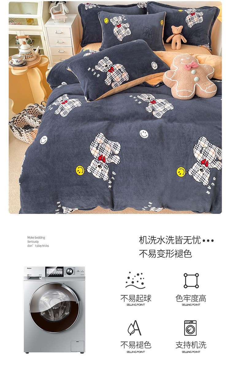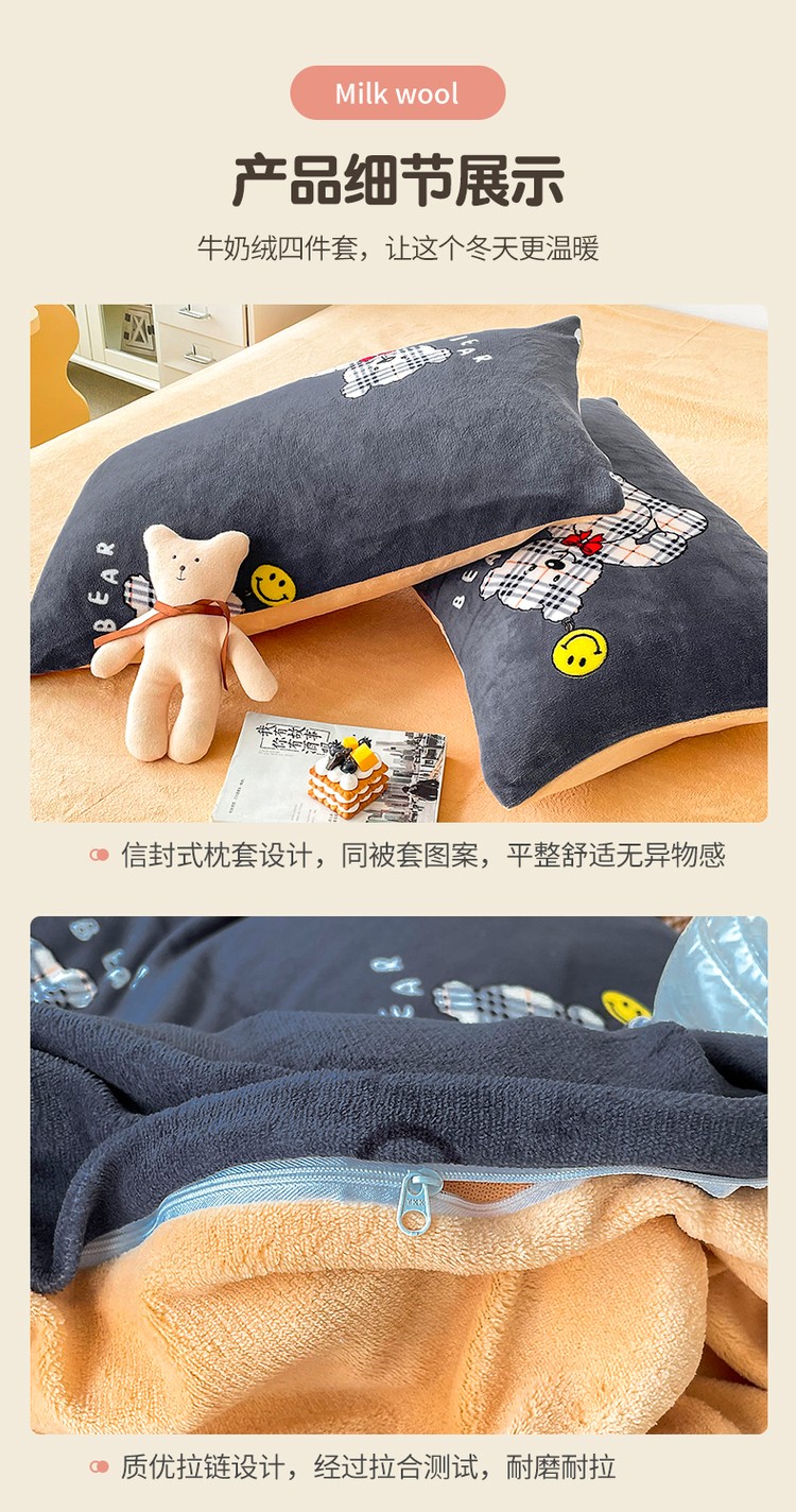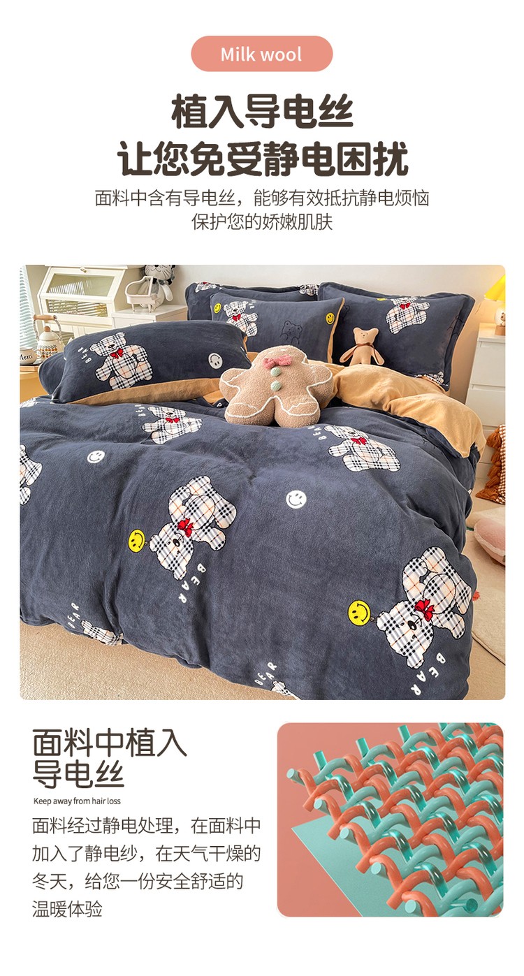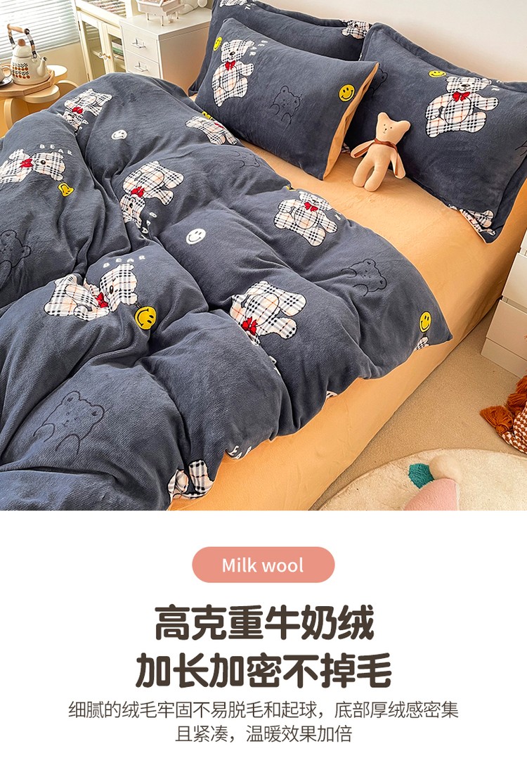 商品名称:优彩 2021新款200克高克重印花牛奶绒四件套 宝利熊