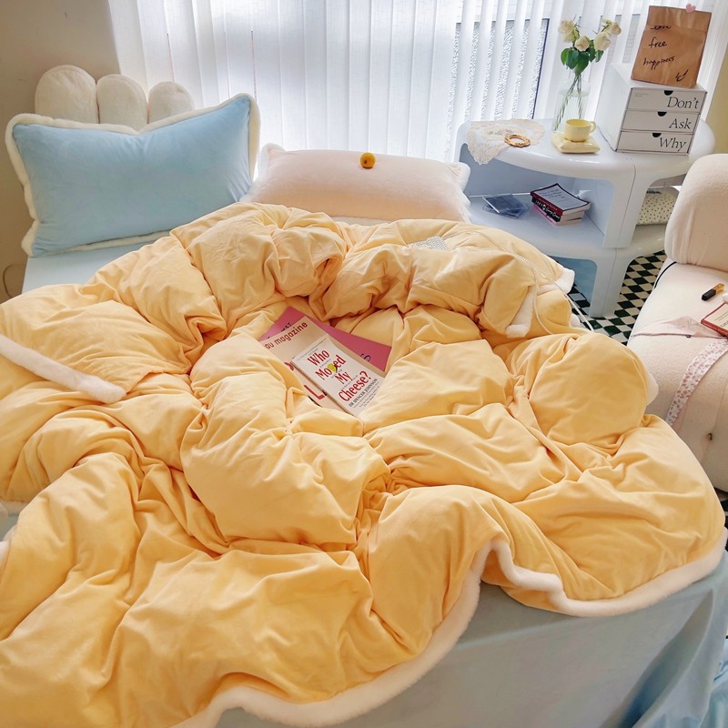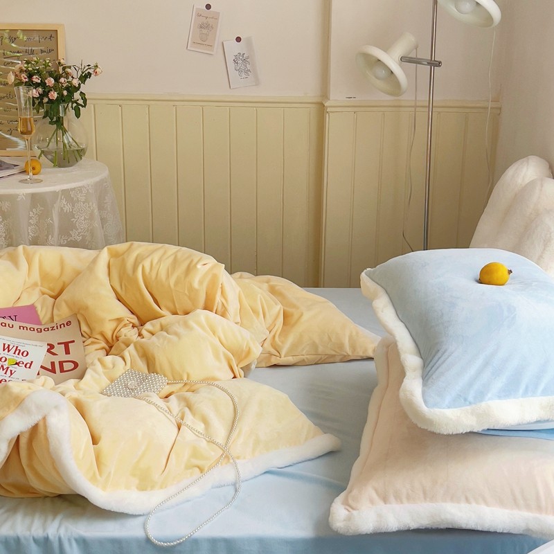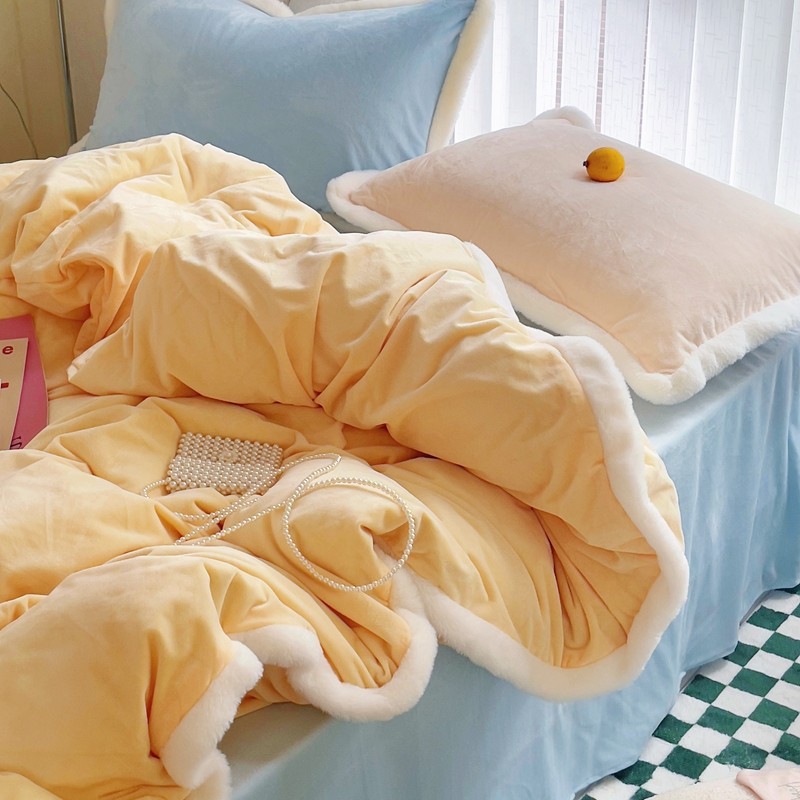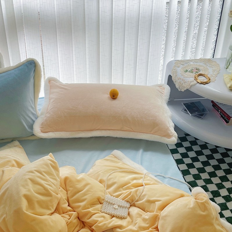 当前位置: 91家纺网 > 商品网购 > 床品套件 > 四件套 > 磨绒四件套 > 圆岛家新品纺撞色混搭系马卡龙ins慢热风冬款暖绒四件套 柠檬黄-枕套橘拼绿+床单天空蓝
