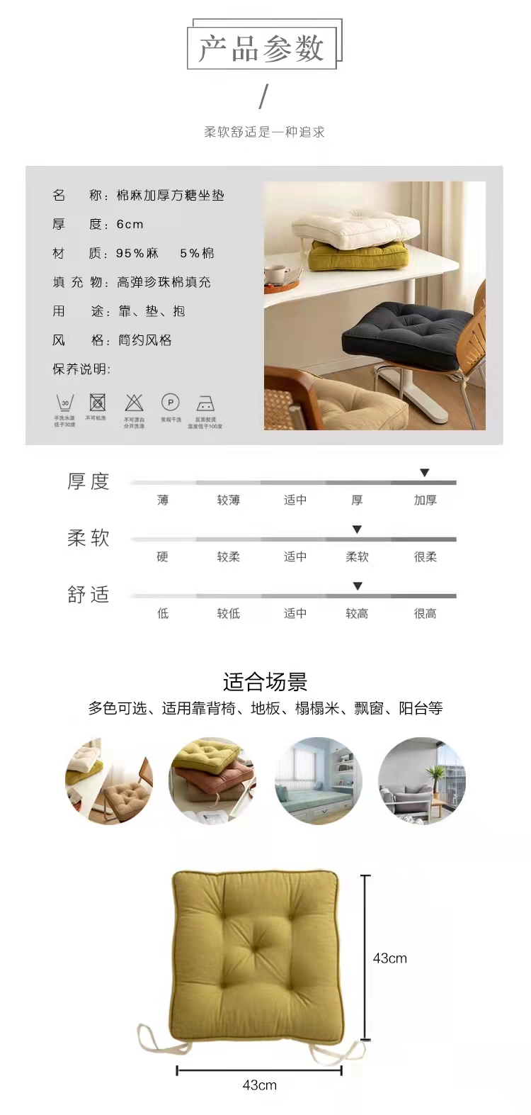 商品名称:(总)美茉家居 2021新款棉麻加厚方糖坐垫