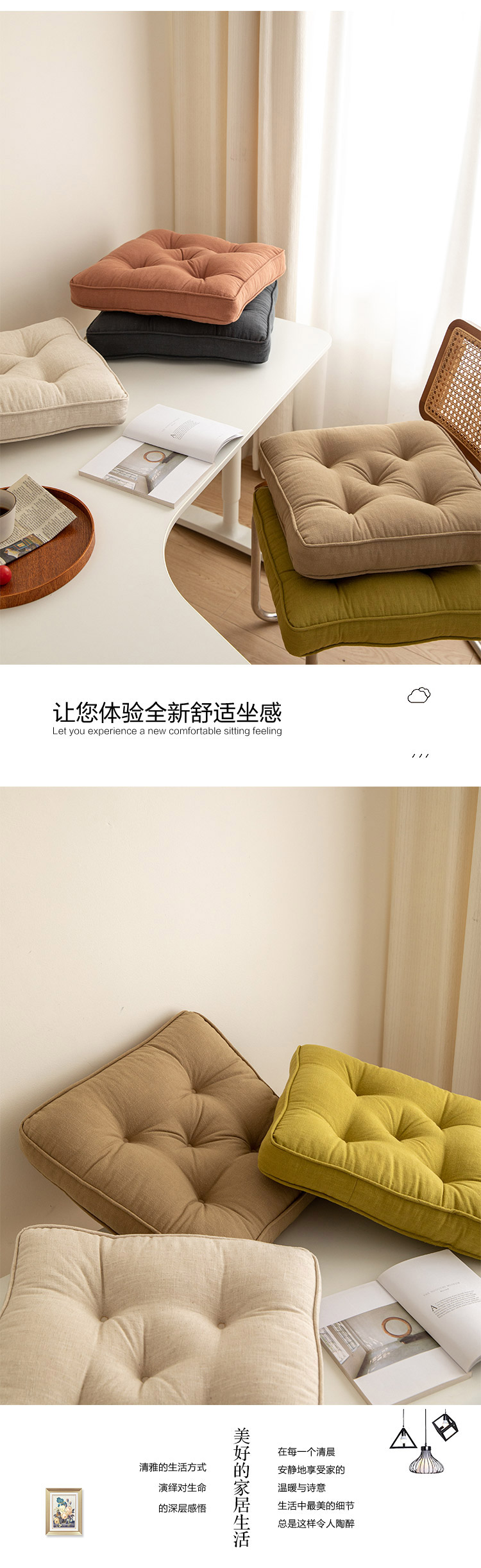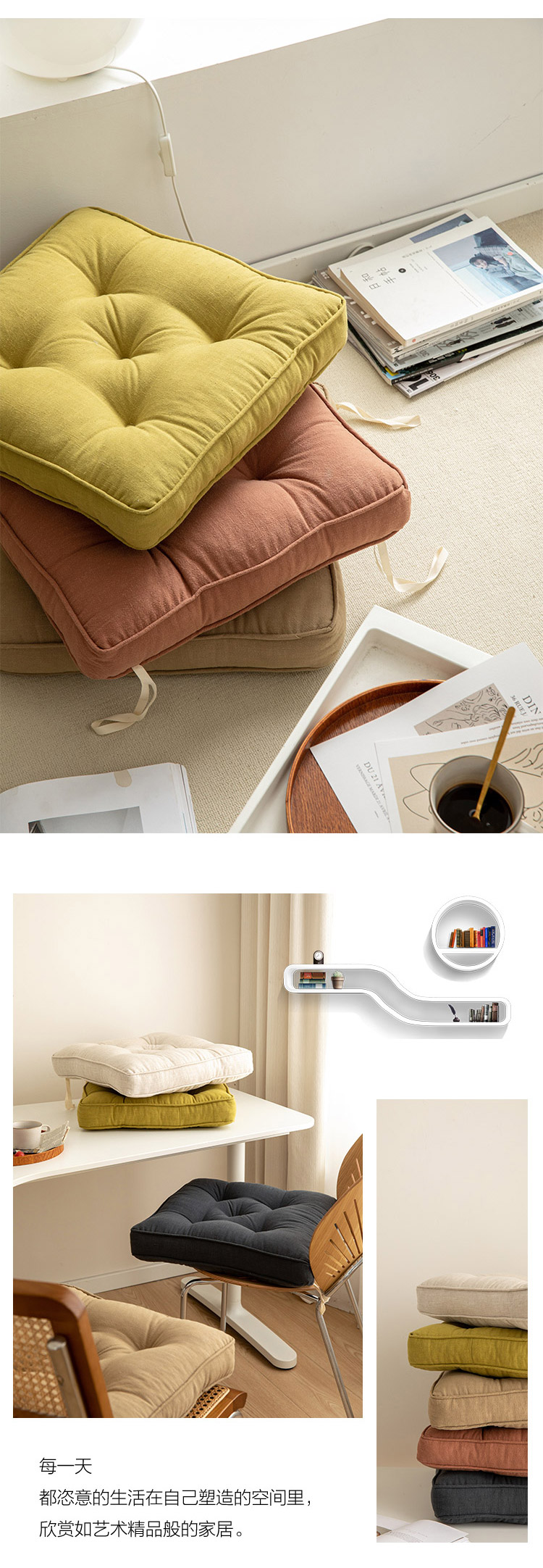 (总)美茉家居 2022新款闲趣日式多针坐垫,圆形,方形