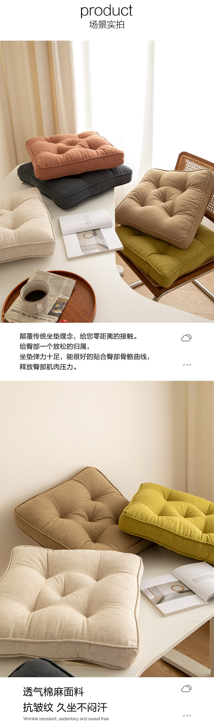 (总)美茉家居 2021新款棉麻加厚方糖坐垫