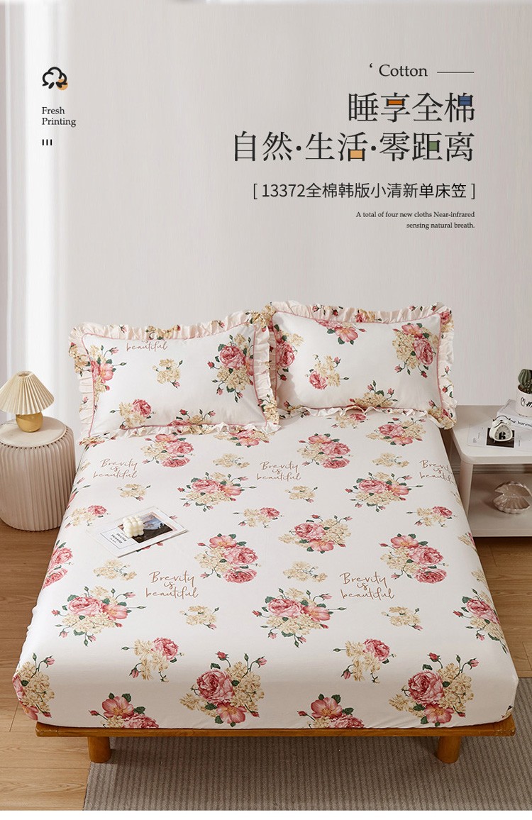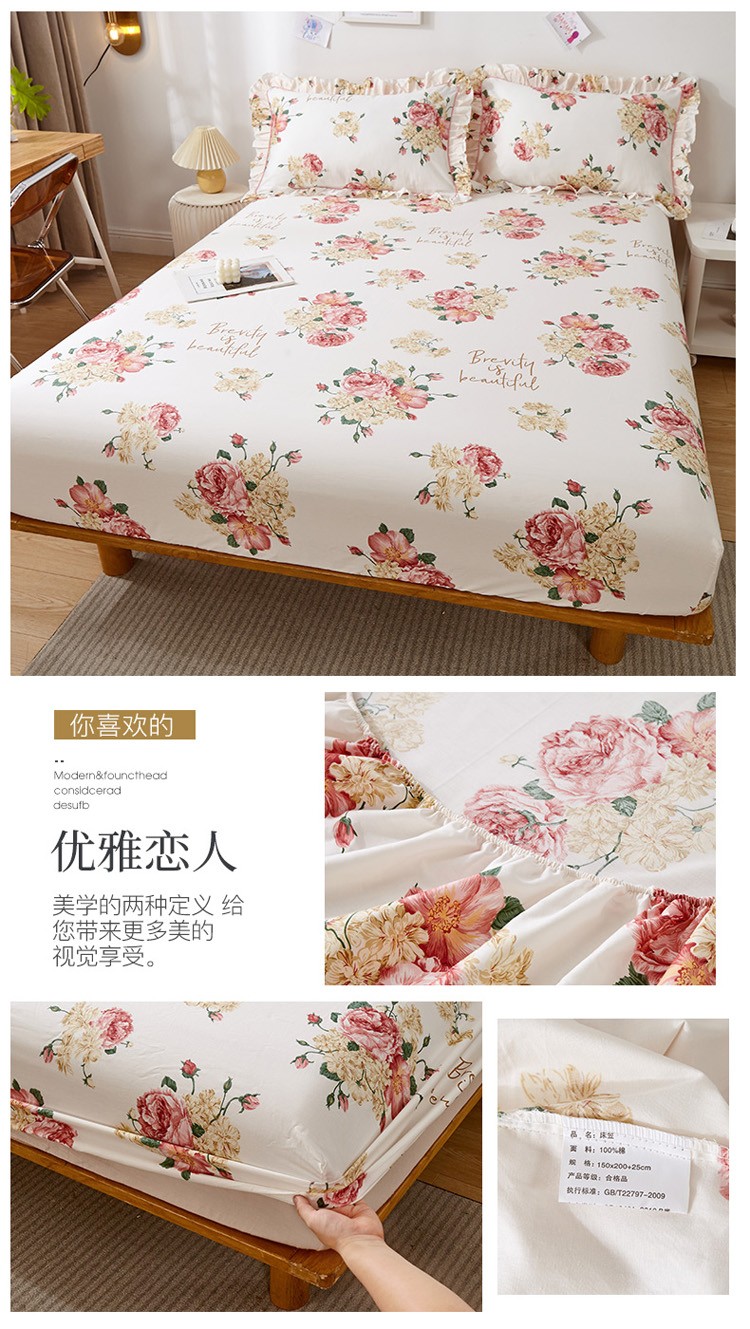 商品名称:宝齐莱 2022新款13372韩版全棉印花单床笠 优雅恋人-1