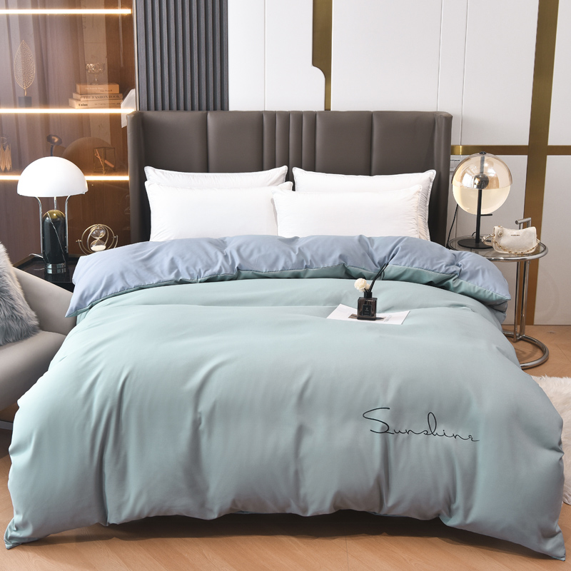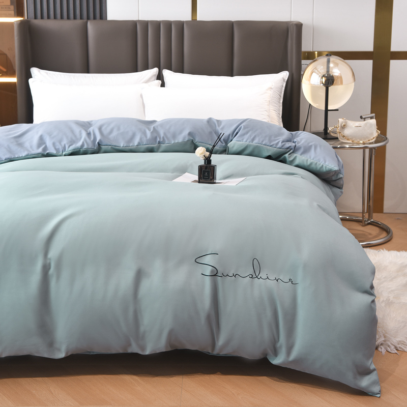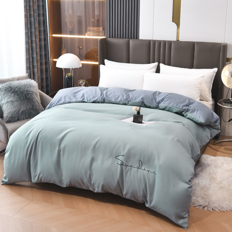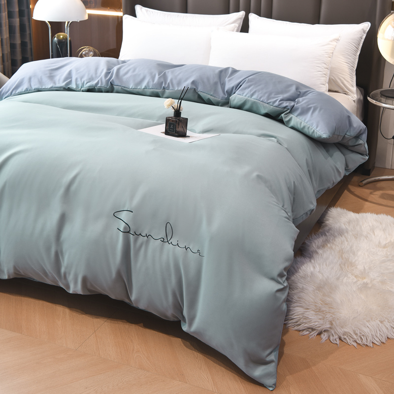 七仙女家纺 2025新款亲肤磨毛绣花款单被套直播供货 湖水兰+兰灰