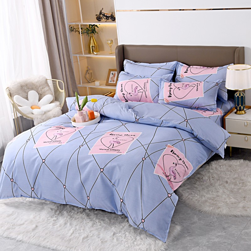 梵巢家纺 芦荟棉三四件套,床单,被套,枕套化纤四件套心心念念,心心念念