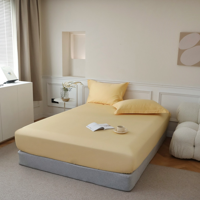 蕊姿 超柔水洗春夏新款50s双股新疆长绒棉单床笠 奶油黄