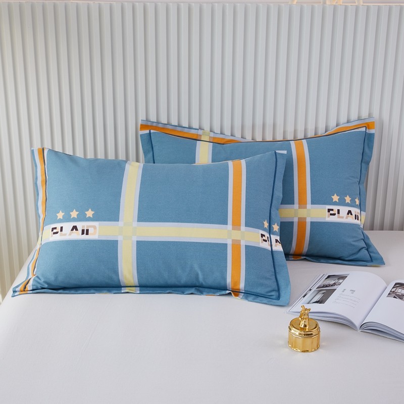 • 91家纺网 家纺一手货源 找家纺 杜先生 新款全棉加厚喷气活性磨毛系列单枕套一对星格-蓝