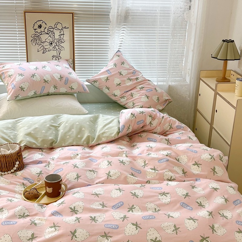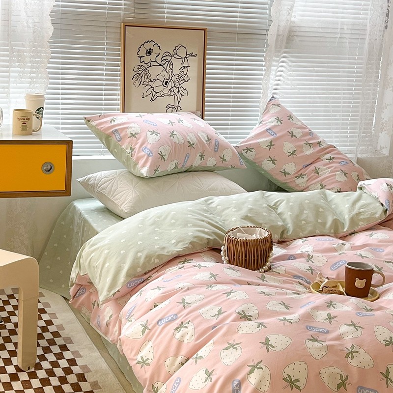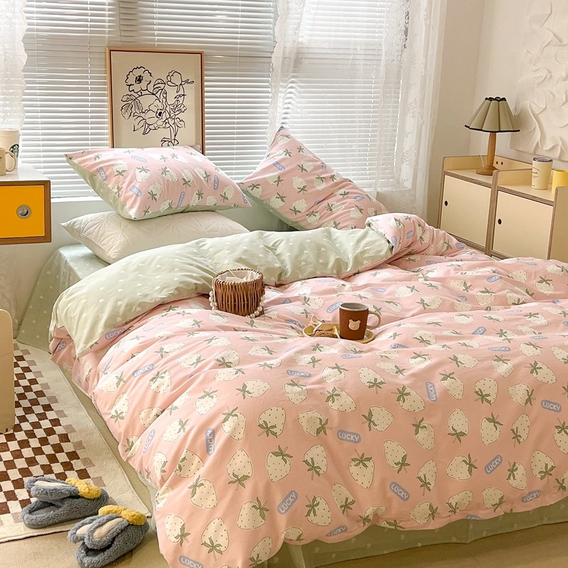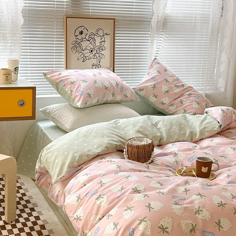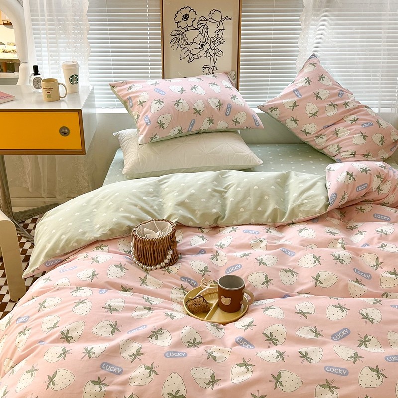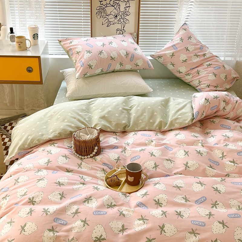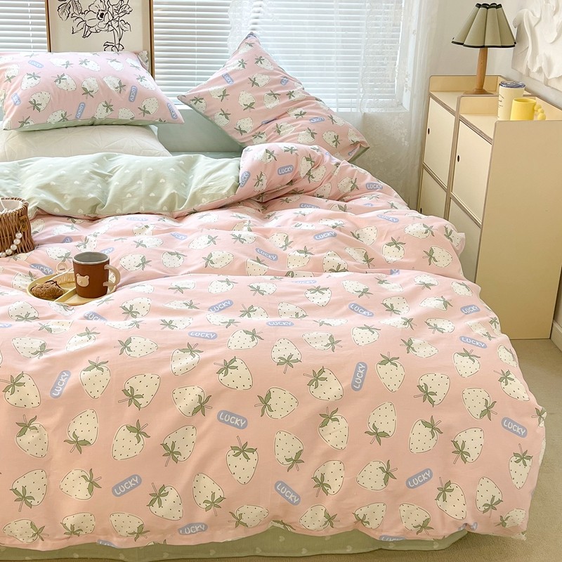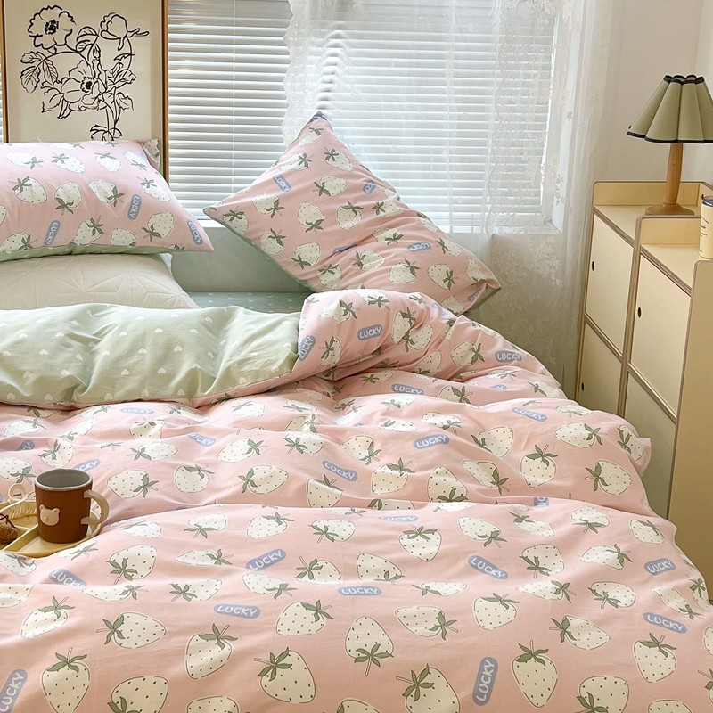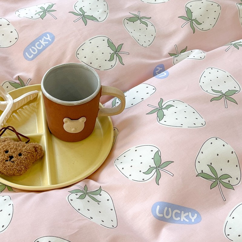 昔可2022新款印花全棉四件套跑量款 甜心白草莓