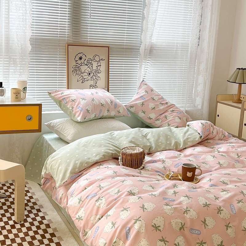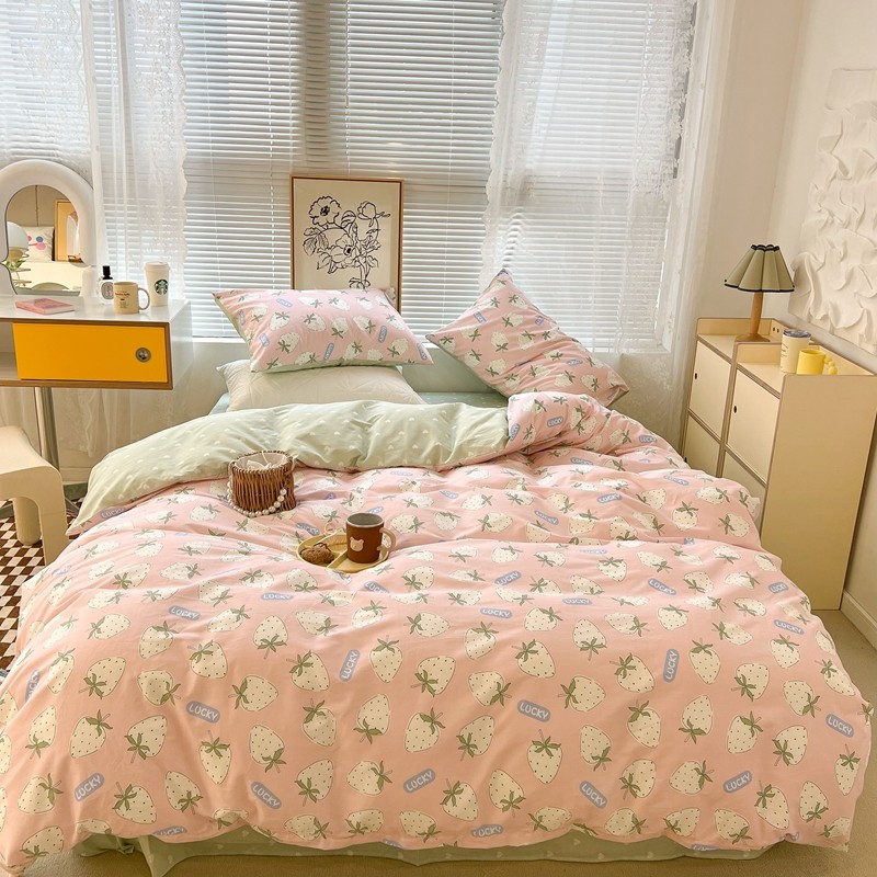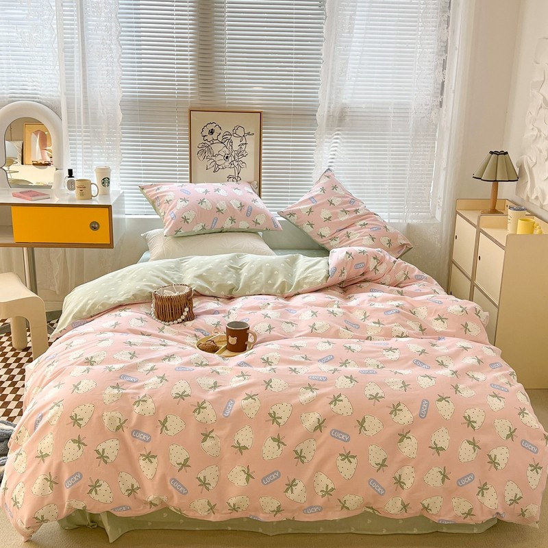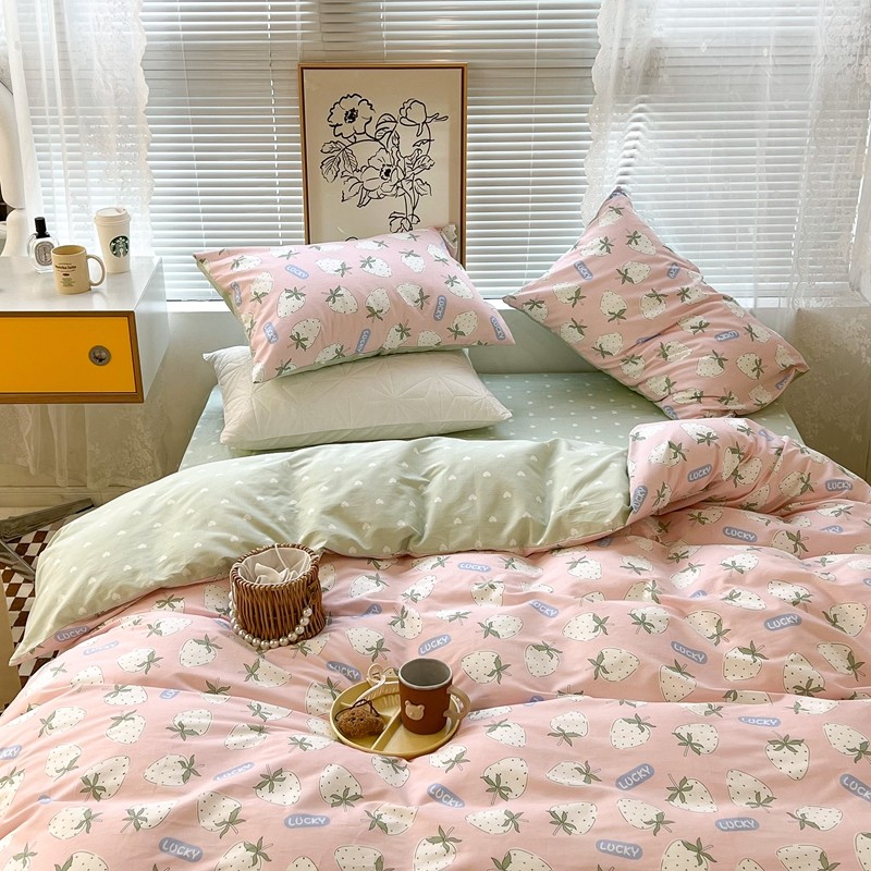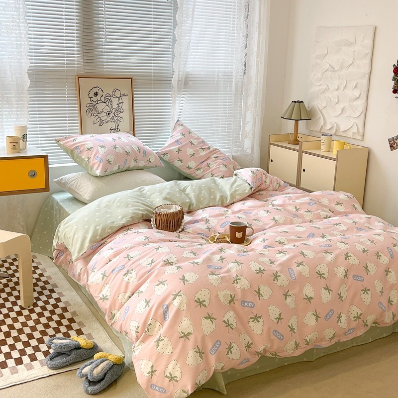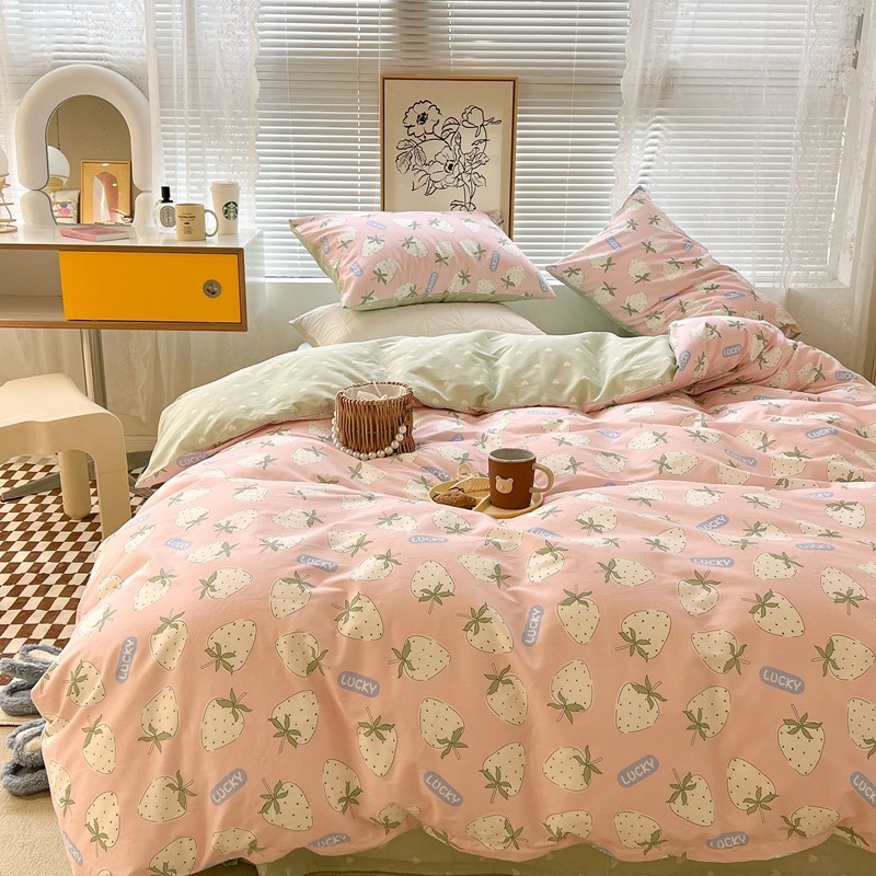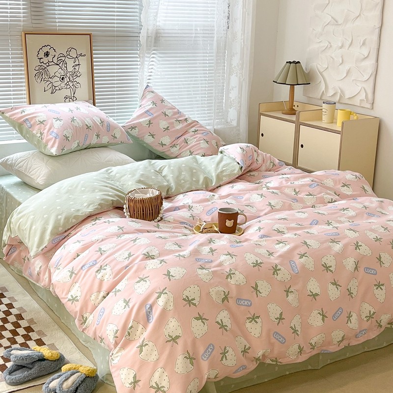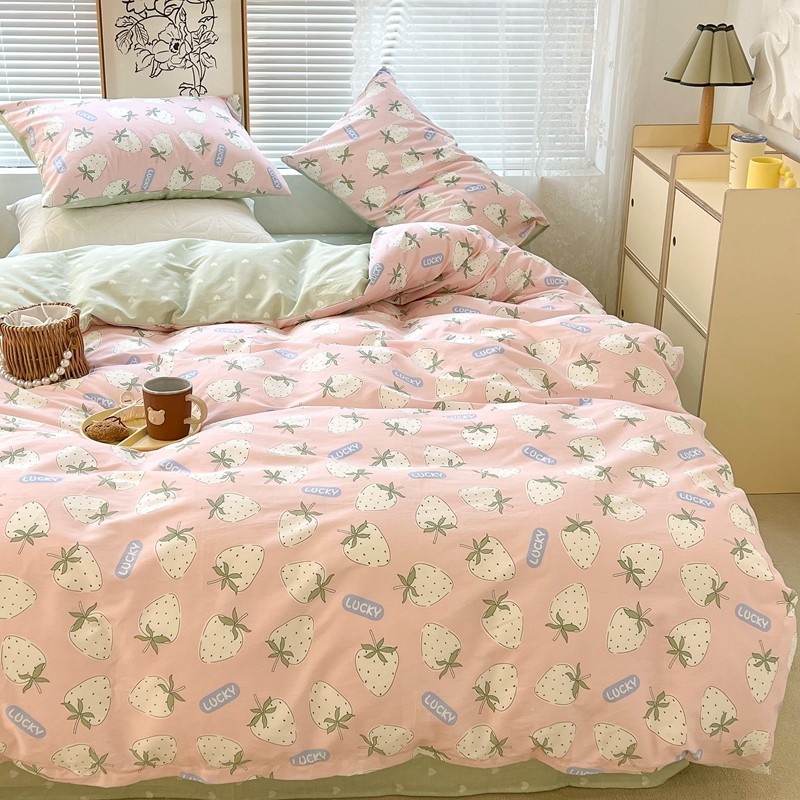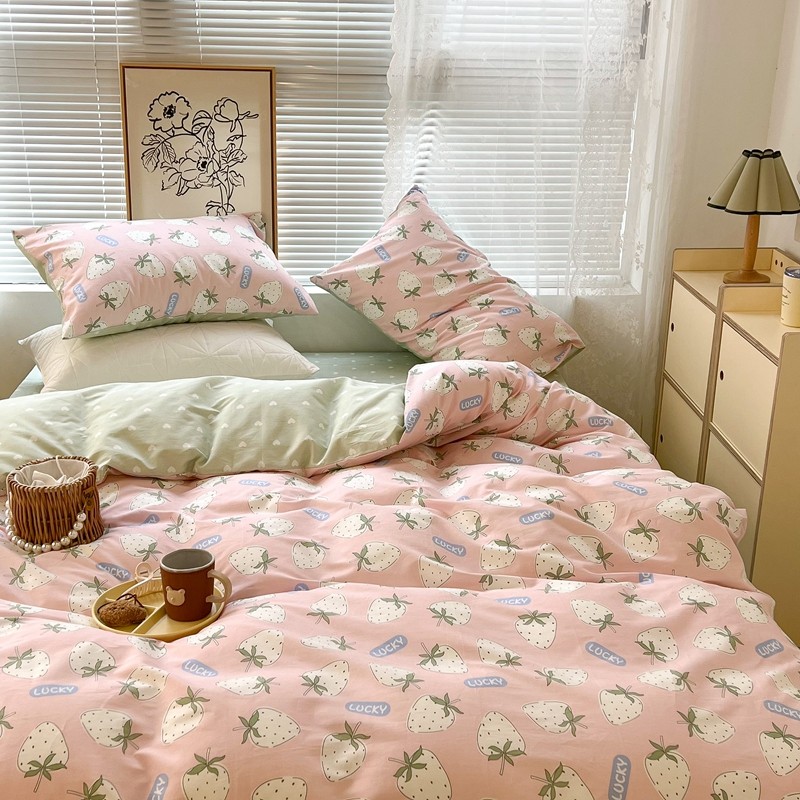昔可2022新款印花全棉四件套跑量款 甜心白草莓