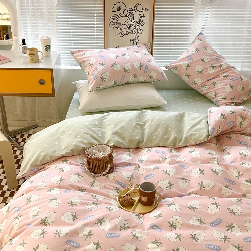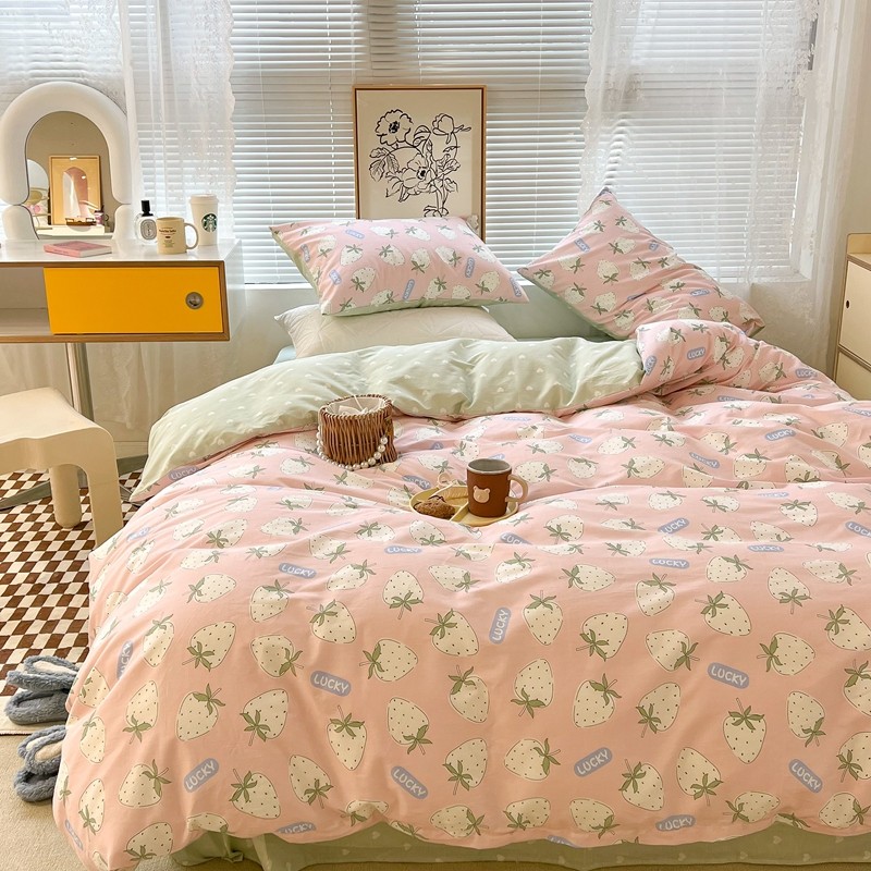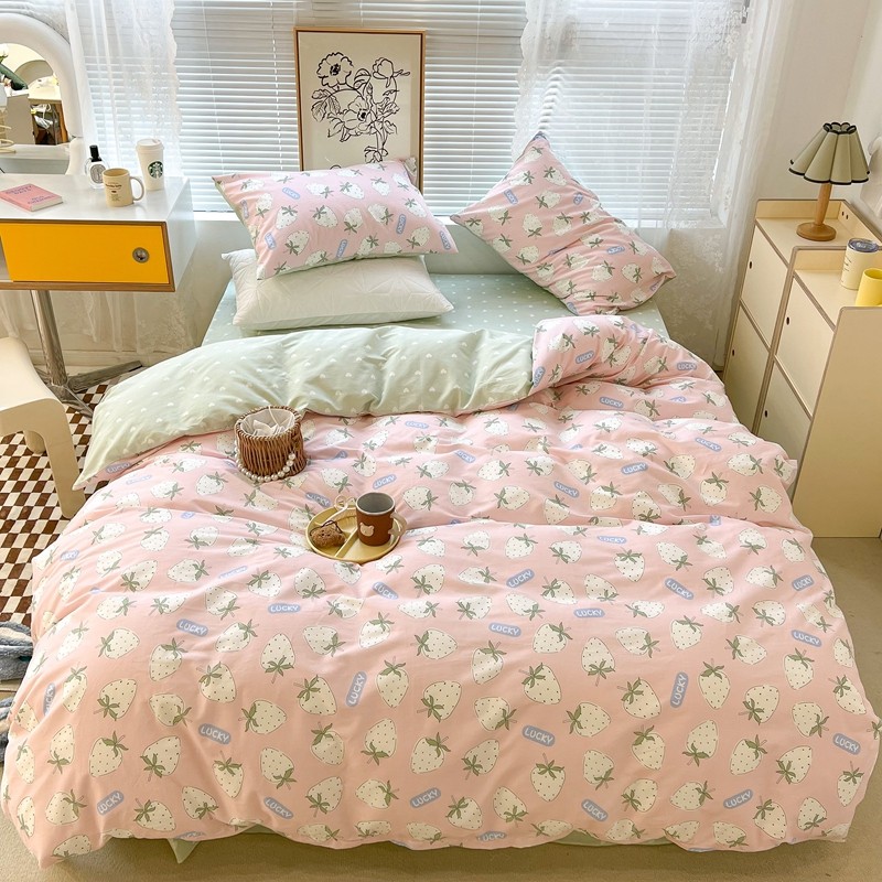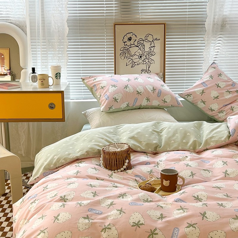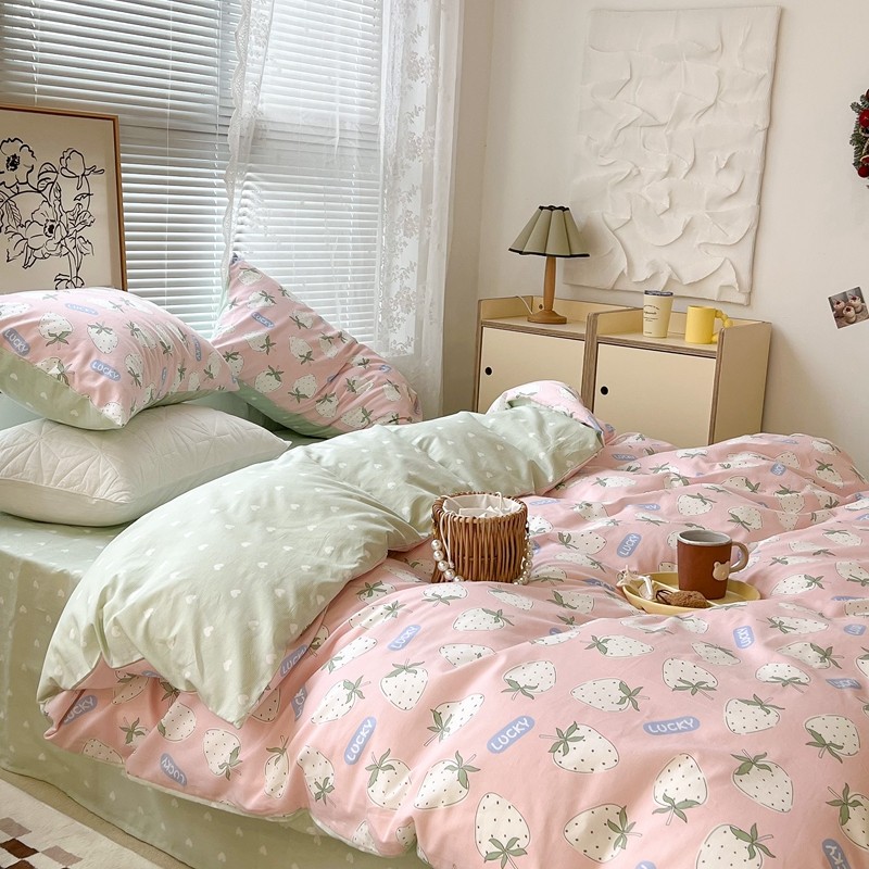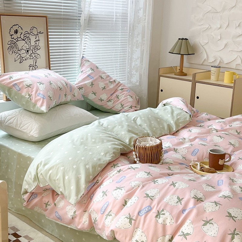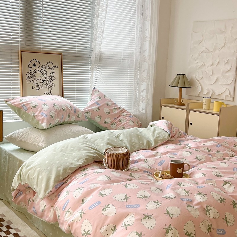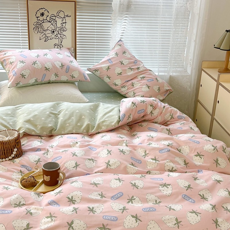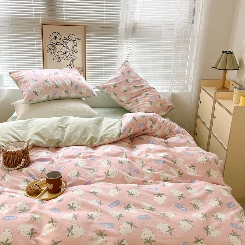 昔可2022新款印花全棉四件套跑量款 甜心白草莓