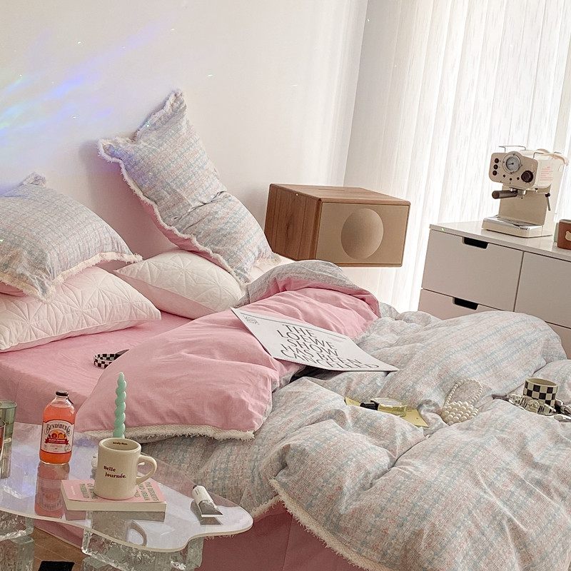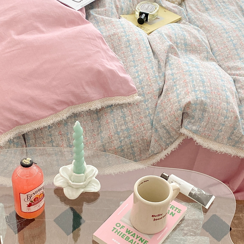 商品名称:昔可2022新款流苏小香风系列四件套 香香粉兰 流苏