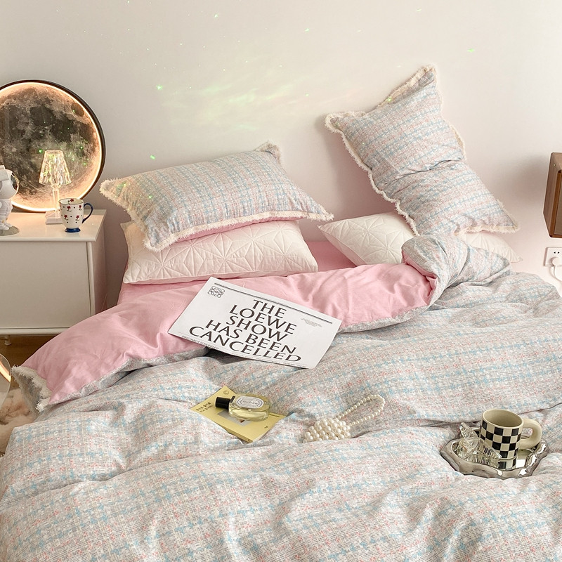 昔可2022新款流苏小香风系列四件套 香香粉兰 流苏
