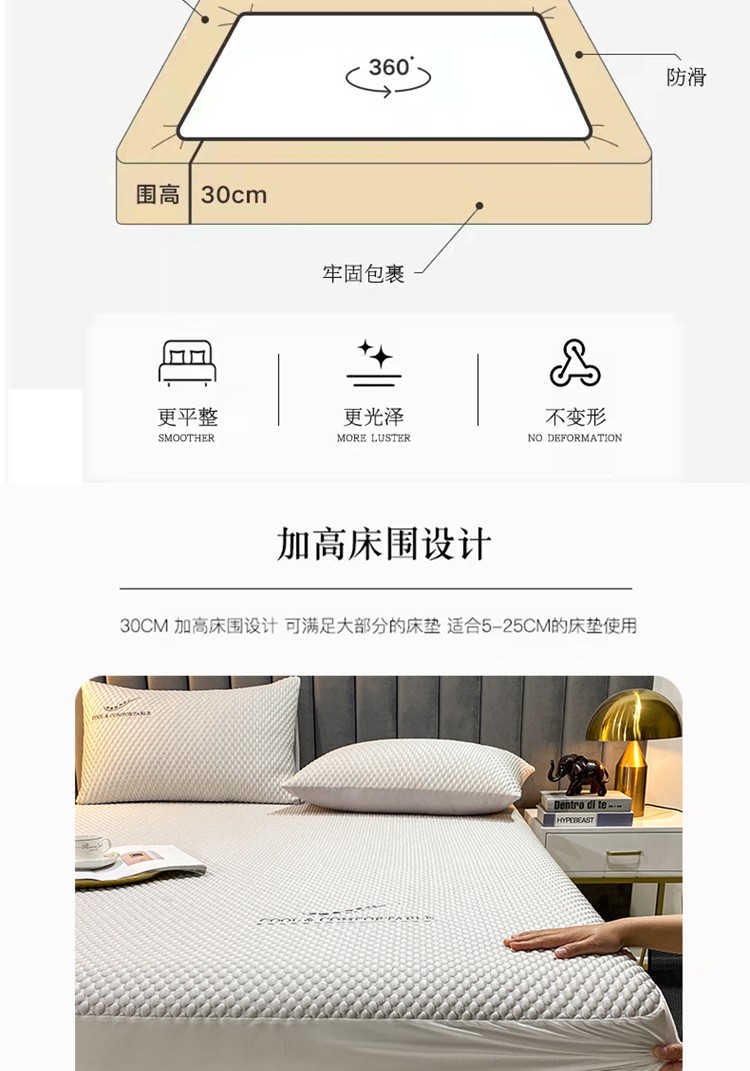 商品名称:总艾可可2024新款A类600D魔力凉感豆豆凉席床笠款三件套
