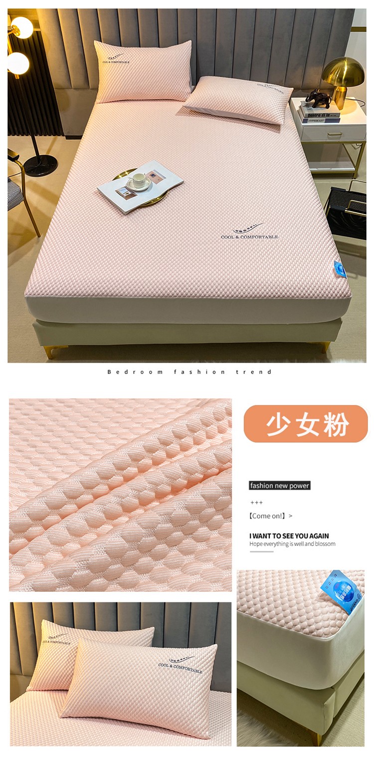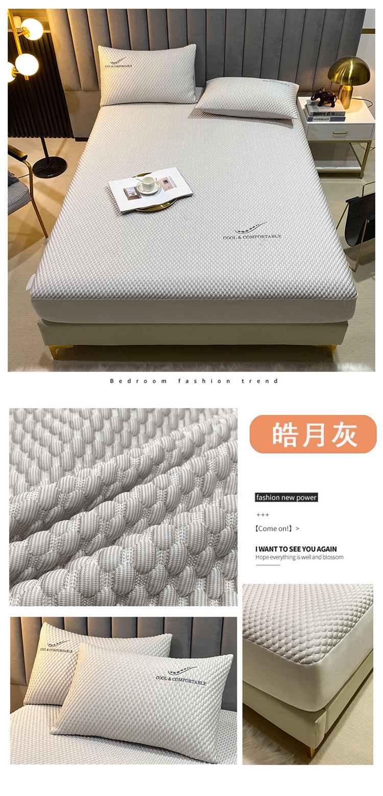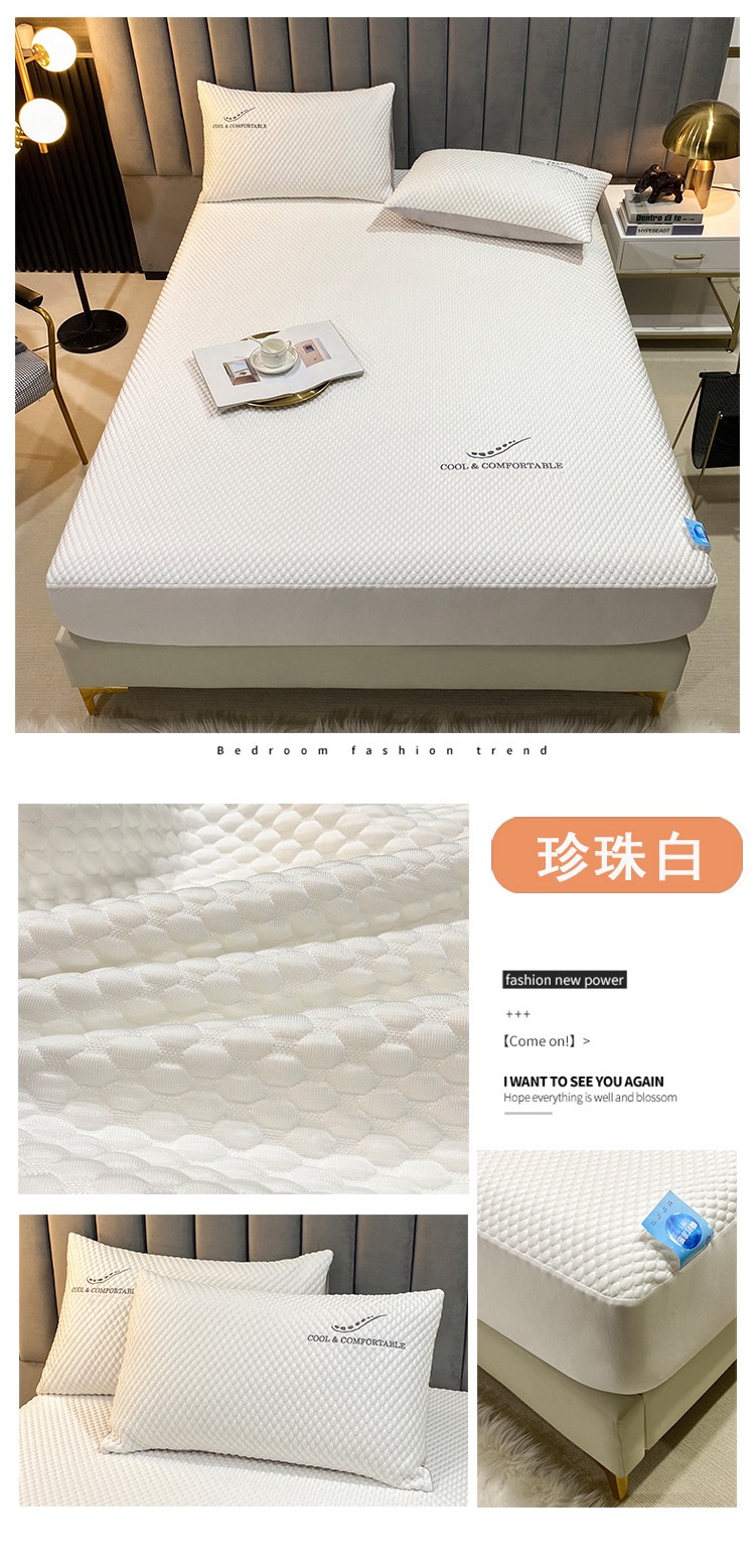 总艾可可2024新款A类600D魔力凉感豆豆凉席床笠款三件套,皓月灰,奶茶色,少女粉,炫彩蓝,珍珠白
